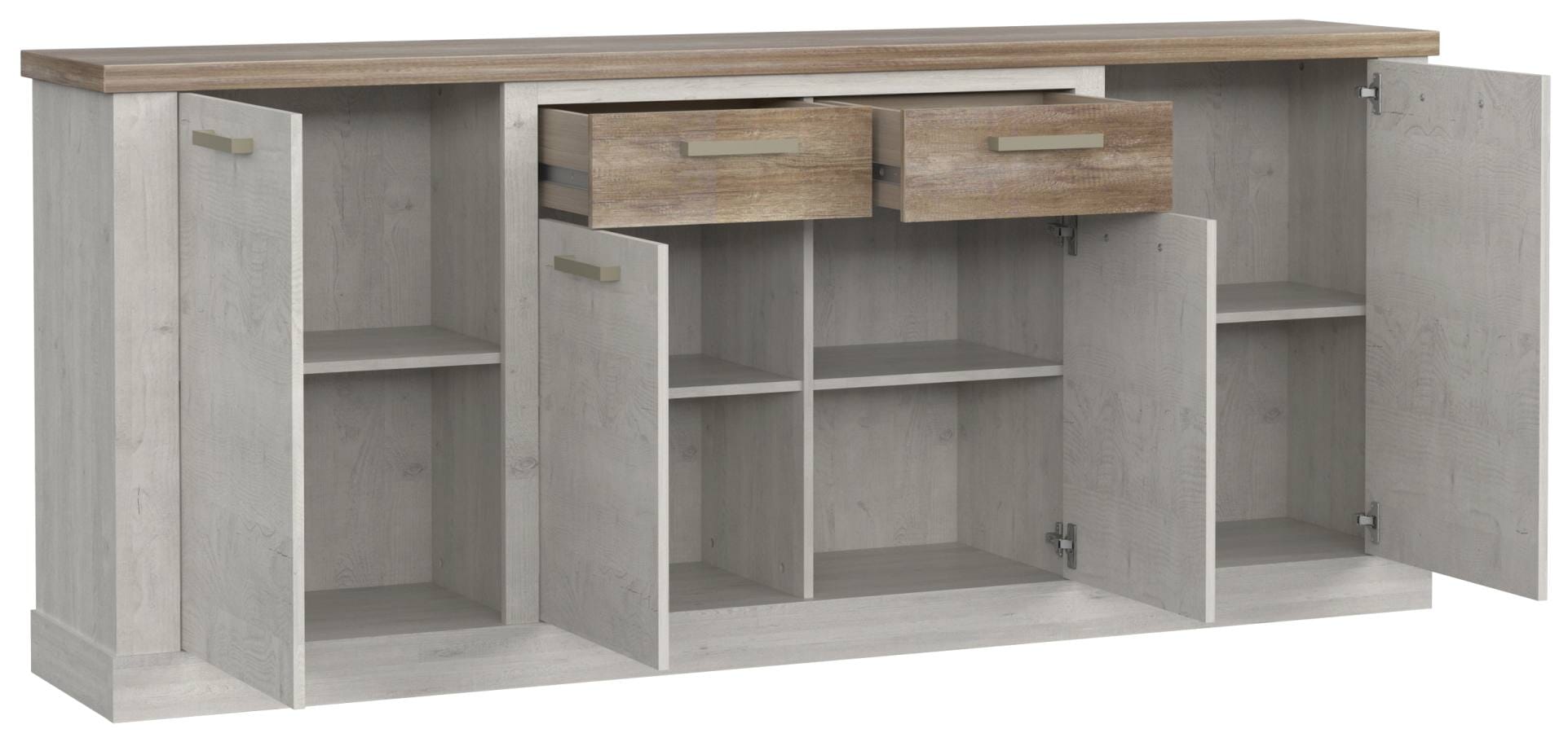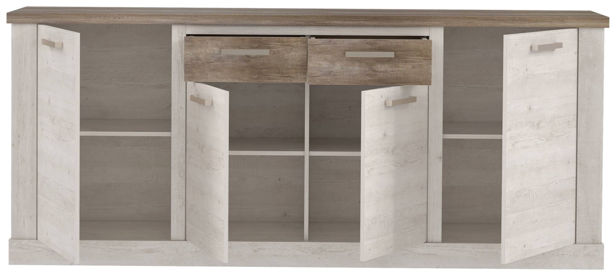 Sideboard DURO, 4 Türen und 2 Schubladen, in Pinie weiß antik