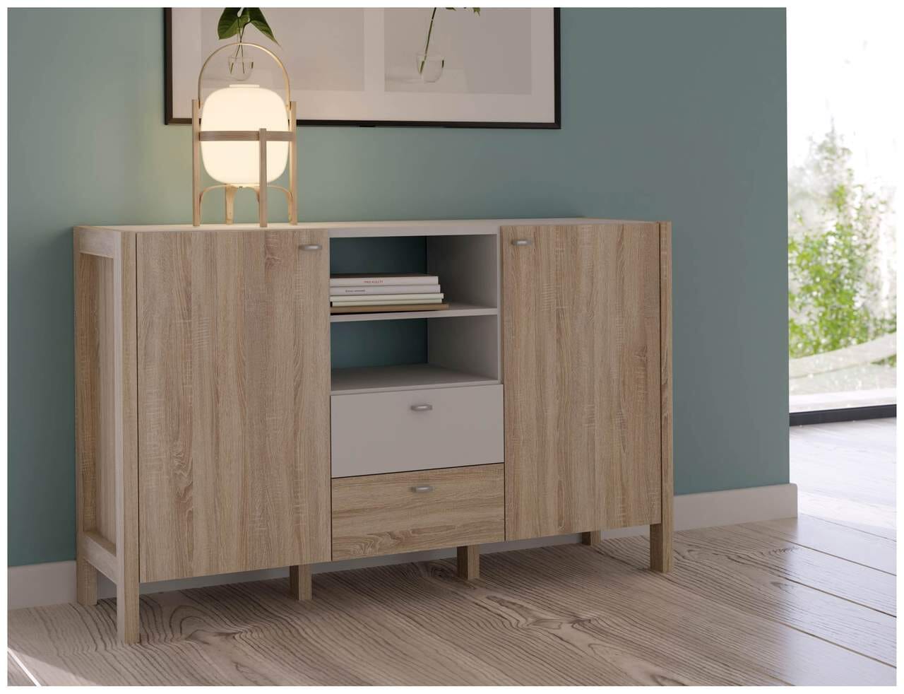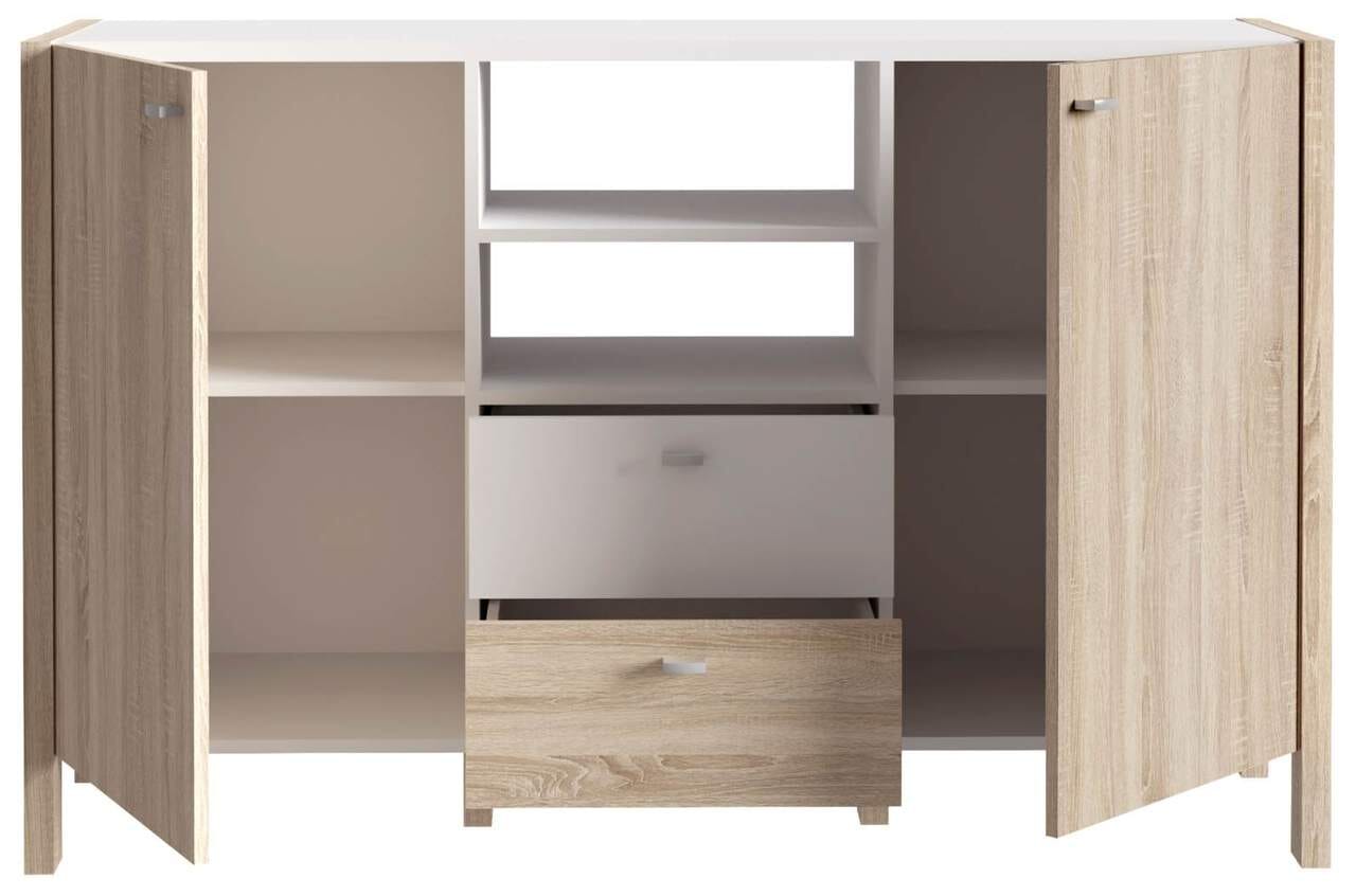 Sideboard HOYVIK 2-trg. 2 Schubladen Optik: Sonoma Eiche / Weiß, Forte
