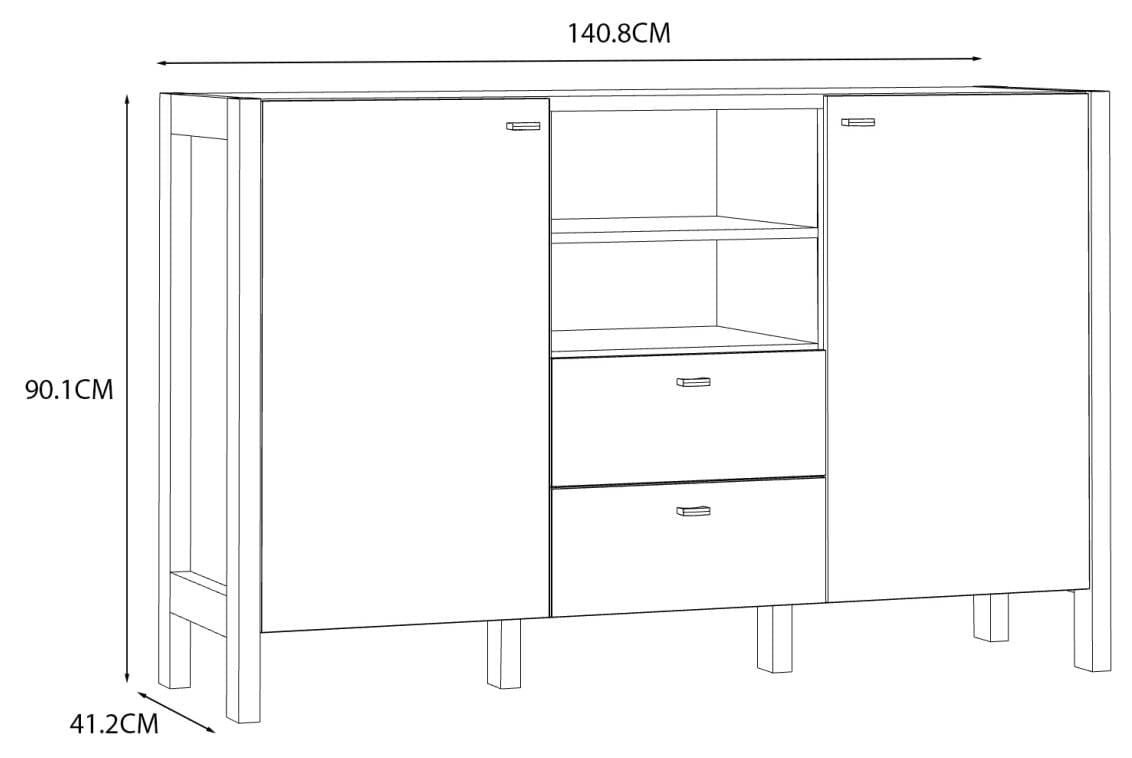 - Maße: B/H/T 140,8 x 90,2 x 41,2 cm
