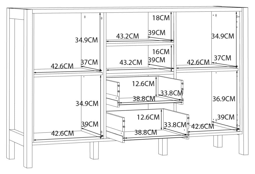 - 2 Schubladen und 2 Türen
