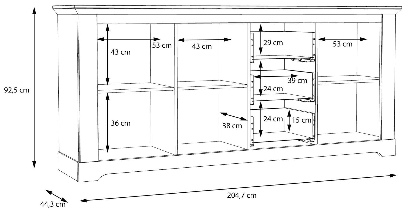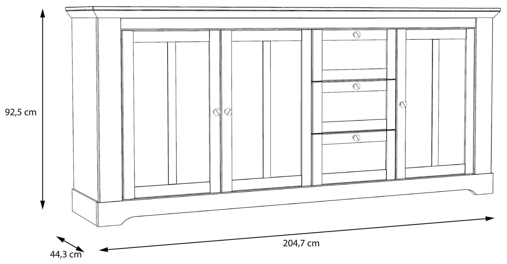 - Maße: B/H/T 204,7 x 92,5 x 44,3 cm