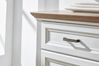 Sehr formschön wirken die Fronten des Möbelstücks mit den in angesagter Kassettenform gestalteten Türen sowie den robusten Füßen. Ein gekonntes Gegengewicht hierzu stellen die zierlichen Griffe in edler Metalloptik dar.