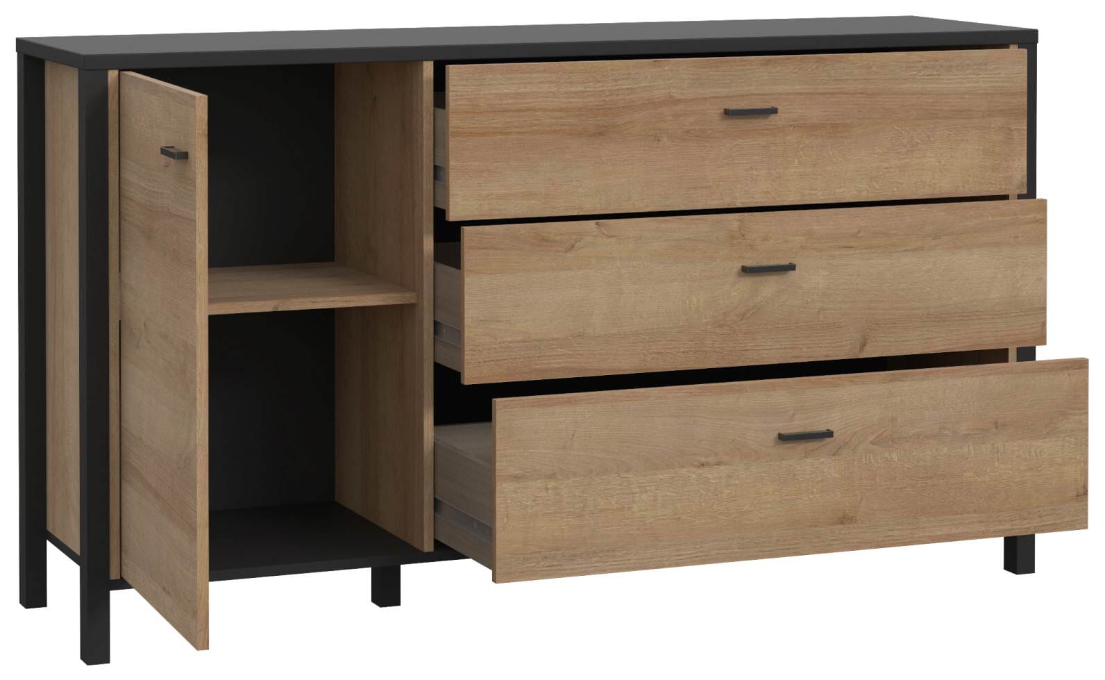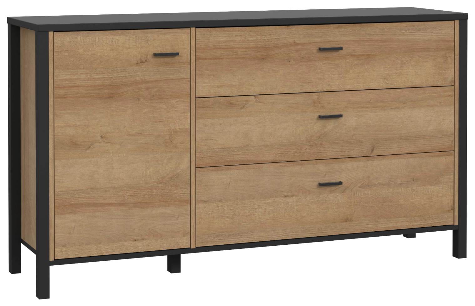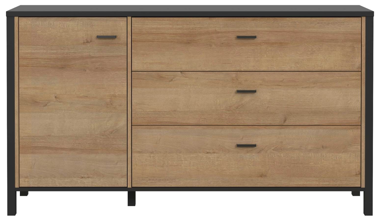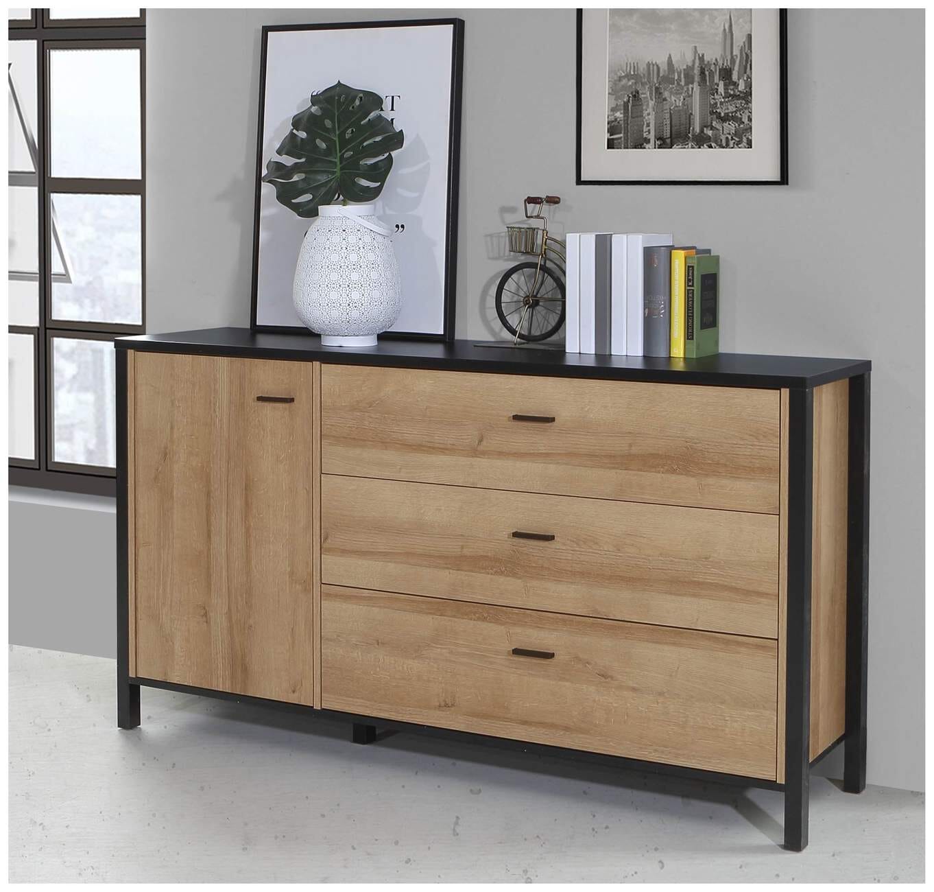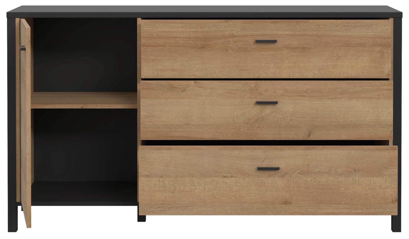Sideboard Kommode HIGH ROCK, 1-trg. 3 Schubladen, Riviera Eiche Optik / Schwarz, Forte