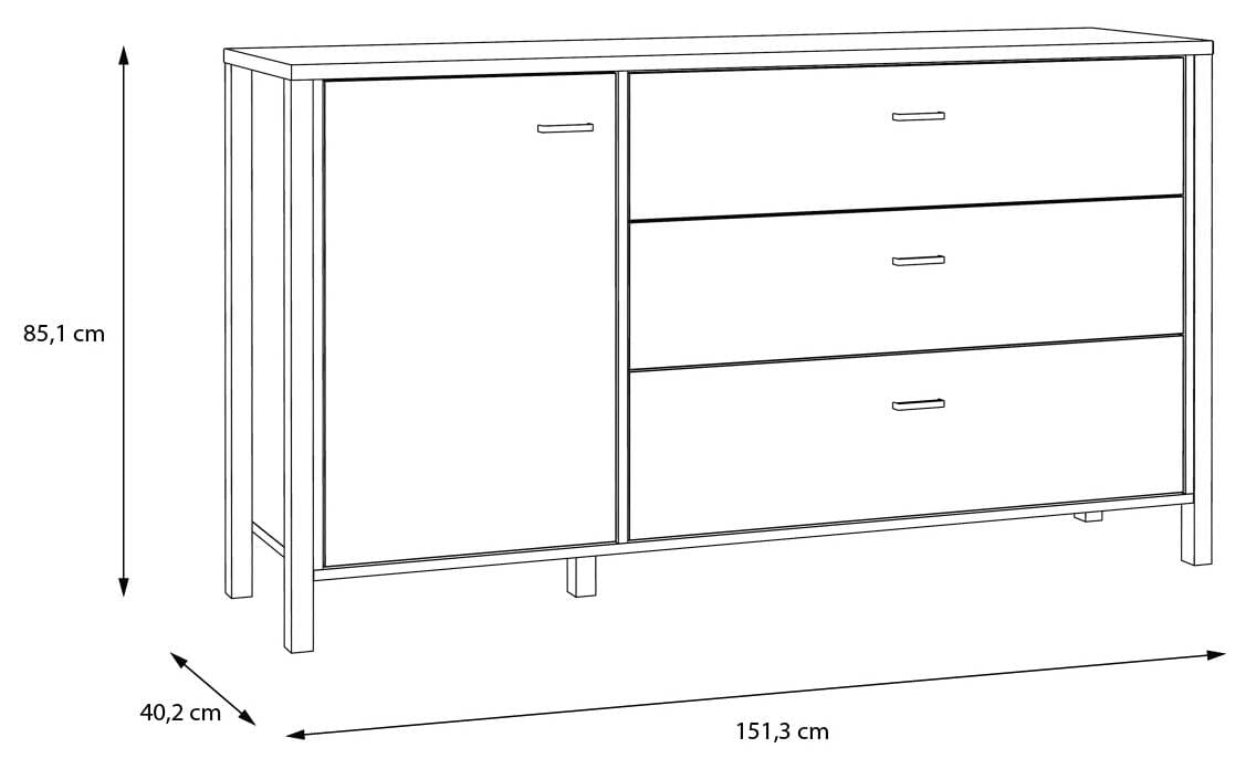 - Maße: B/H/T 151,3 x 85,1 x 40,2 cm