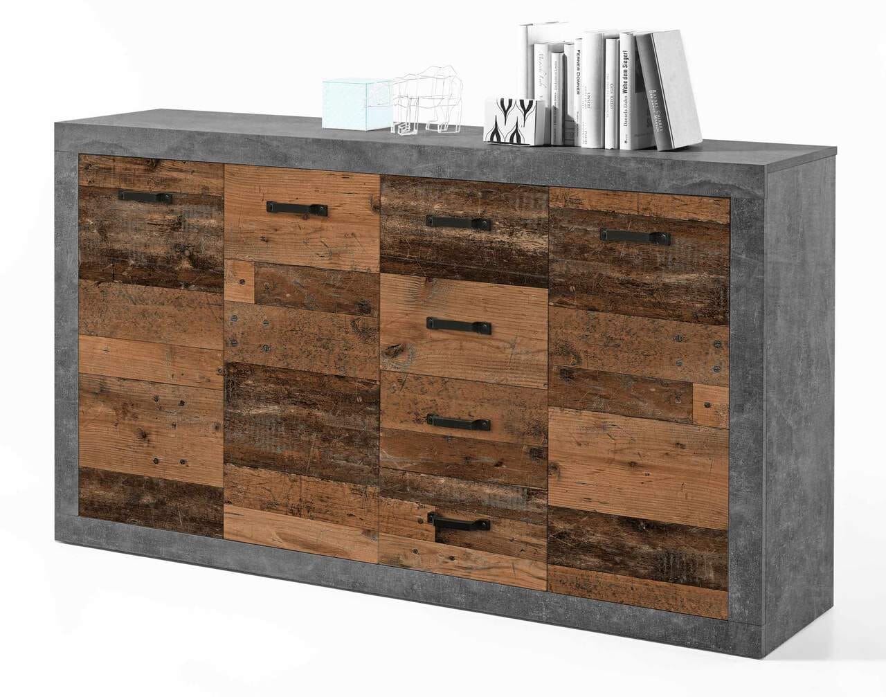 Sideboard Kommode INDIANA 3 Front Old Wood Vintage und Betonoptik