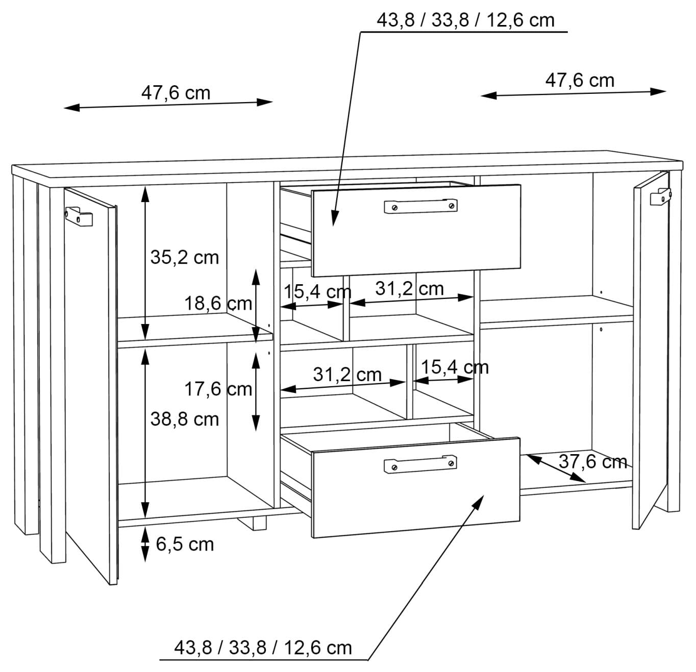 Sideboard Kommode CLIF 2 Türen 2 Schubladen Optik: Old Wood Vintage