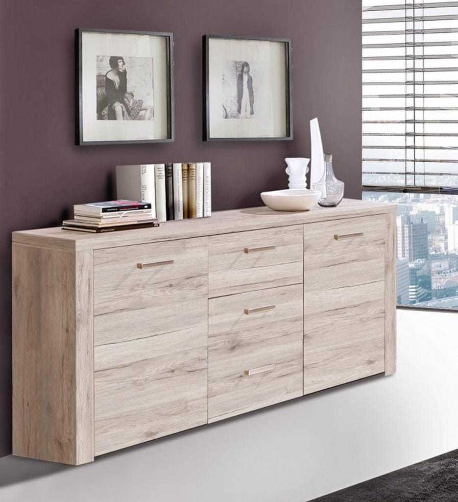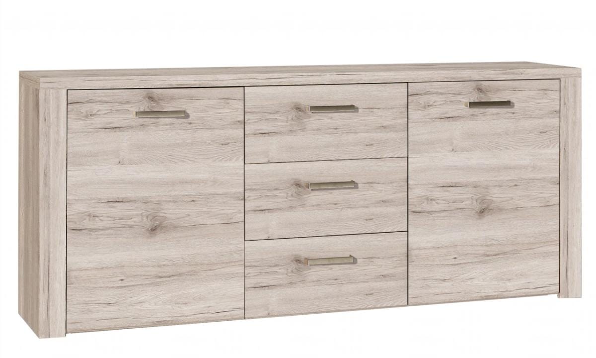 Genug Platz - das ist aber auch der erste Gedanke, den Sie haben werden, wenn Sie dieses Möbelstück sehen. Sie können sehr viel verstauen; hinter den beiden Türen und in den drei Schubladen findet alles seinen Platz. Das helle Dekor, Sandeiche, sorgt dennoch dafür dass dieses Möbel nicht "trutzig" wirkt. Verarbeitet wurde hier Spanplatte, die mit Hilfe eines neuartigen 3D-Dekors den bemerkenswerten Sandeichen Effekt hervor ruft.