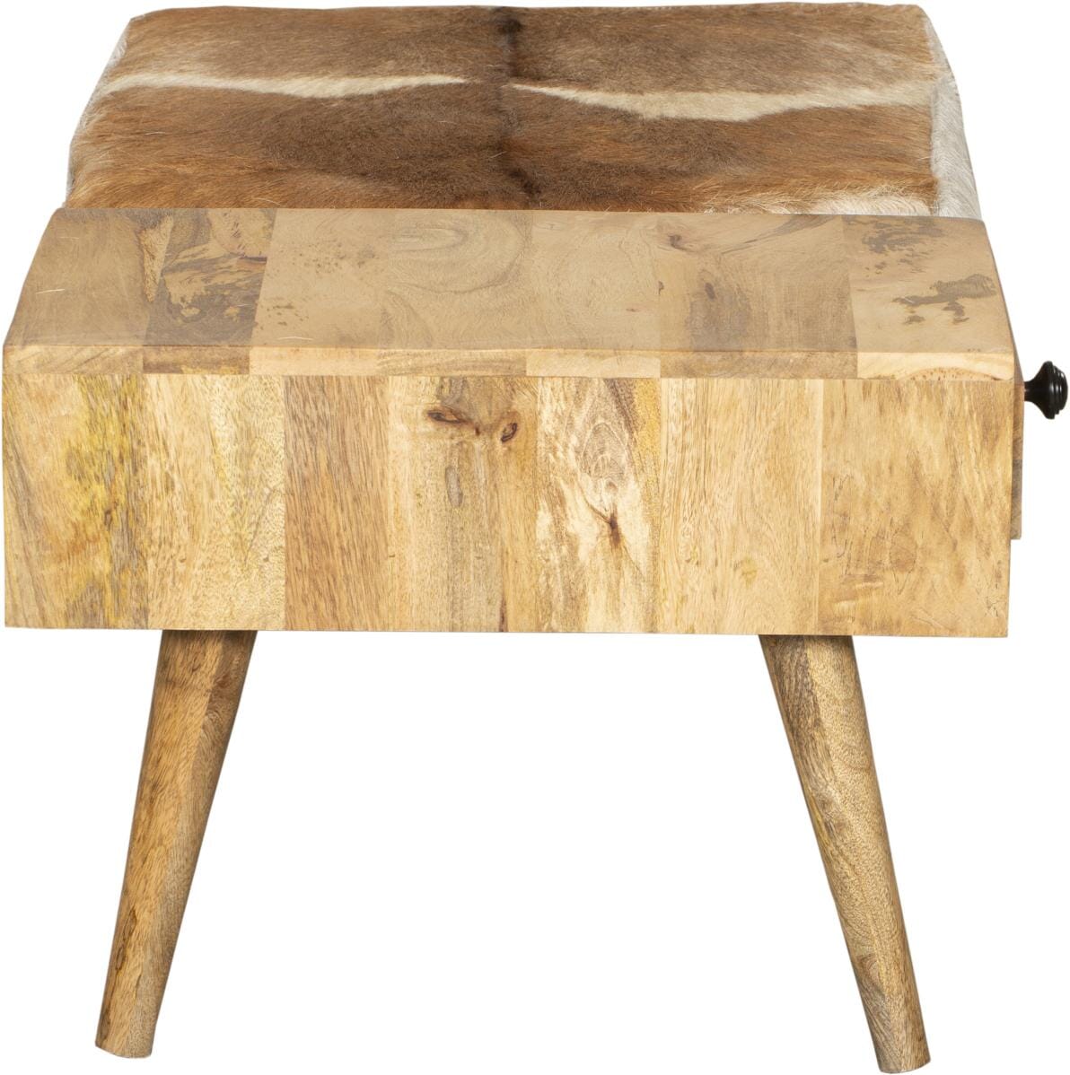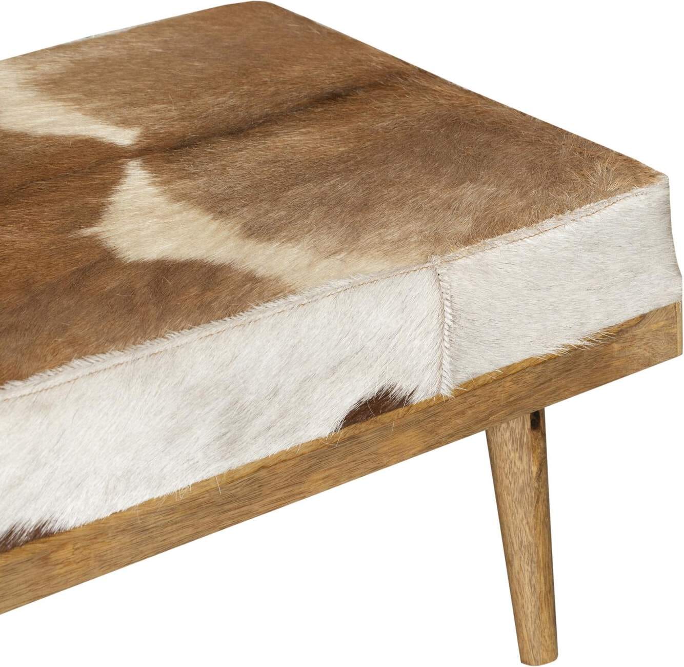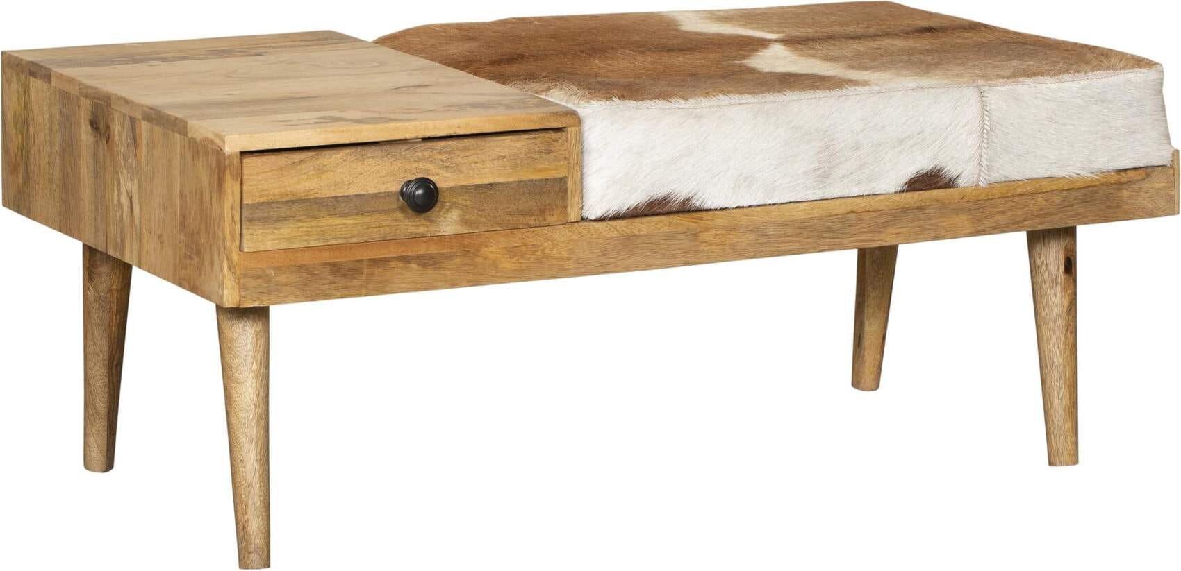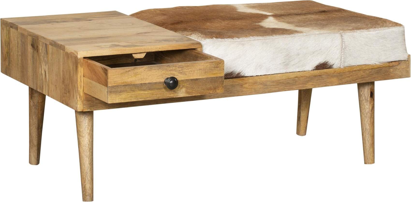 Sitzbank Dielenbank PATNA mit Schublade und Kuhfellbezug