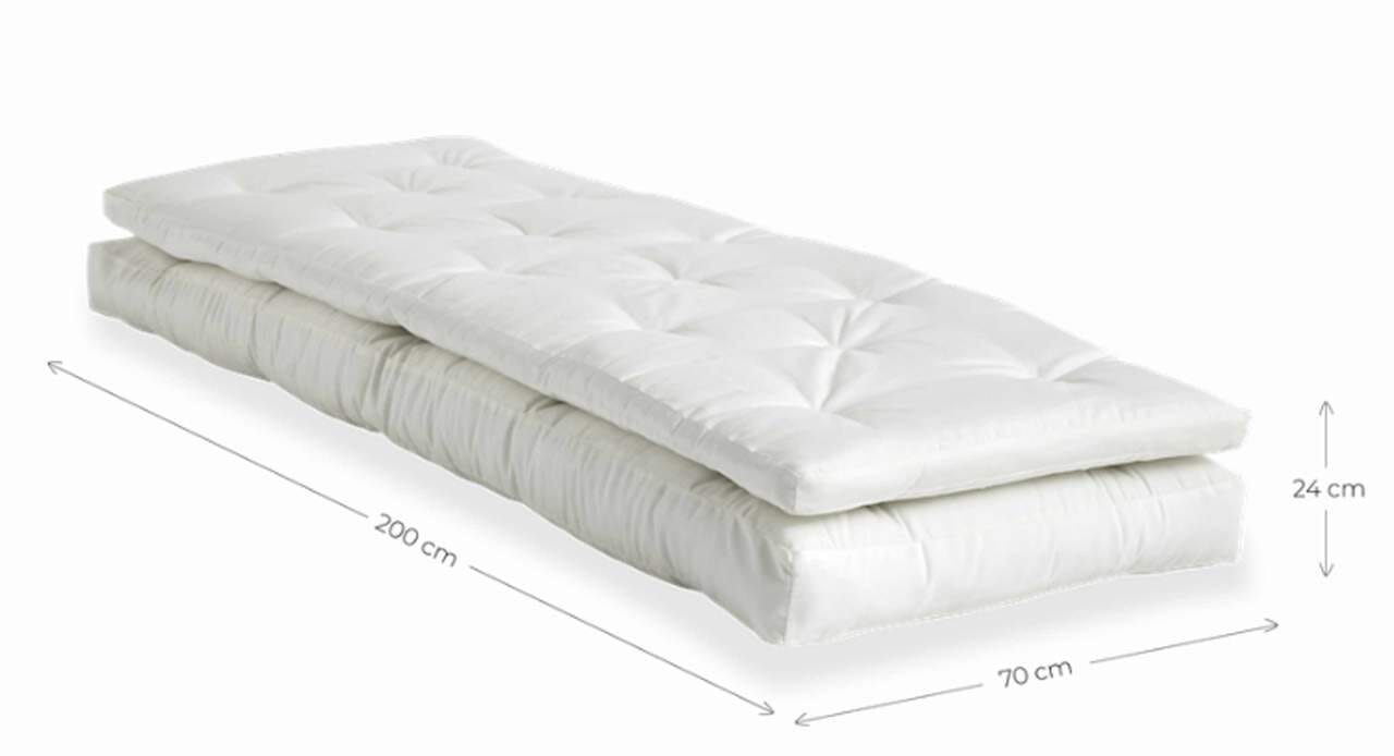 Der hochwertige Bezug ist aus bestem Material Acryl Dralon hergestellt und verspricht eine lange Haltbarkeit, selbst wenn die Liegeauflage draußen im Freien bleibt. Für den Fall, dass ein sanfter Regenschauer die Futonmatratze streifen sollte, wischen Sie die Spuren des Wassers einfach mit einem weichen Tuch ab. Die Matratze weist die Abmessungen 70 mal 200 cm auf und eignet sich für eine Person.