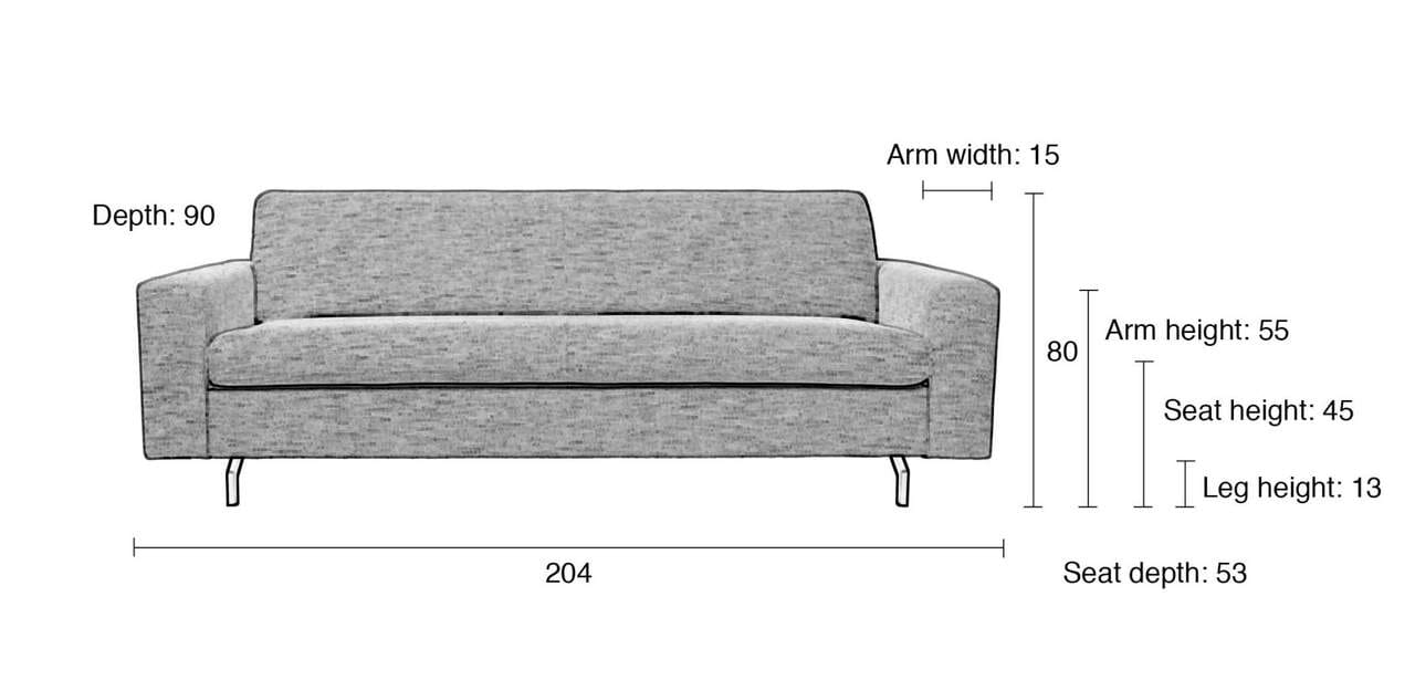 - B/T/H: 204 x 90 x 80 cm