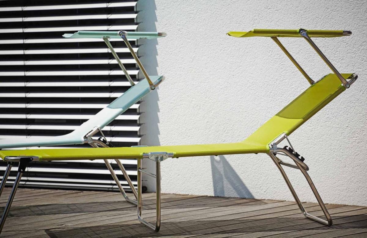 Sonnenliege Fourty-Sun von FIAM, Liege mit der Komfort Liegehöhe von 42 cm und fertig montiertem Sonnendach