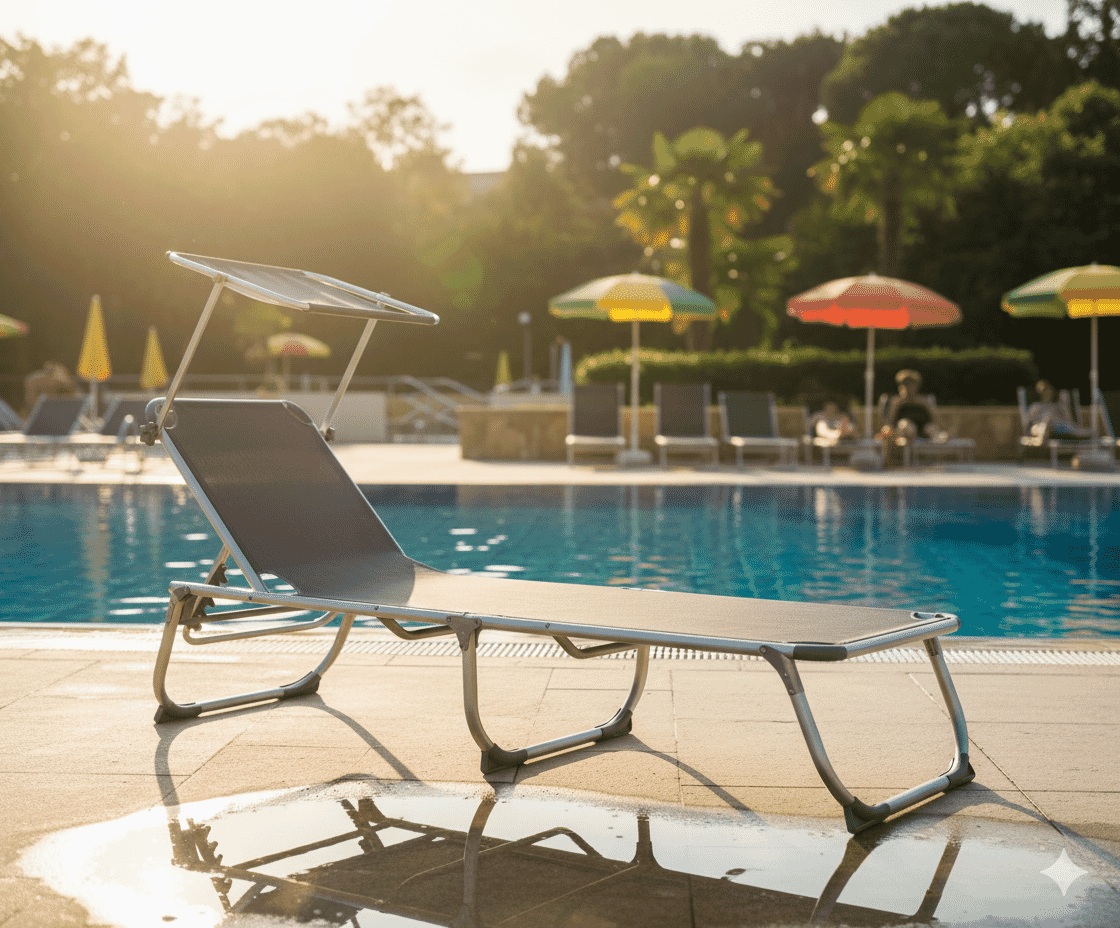 Das Ganze ist aber nicht nur nützlich, sondern auch richtig schön anzusehen. Die Rückenlehne ist 4-fach verstellbar. Was wollen Sie noch mehr? Wunschlos glücklich liegen Sie in der Sonne.