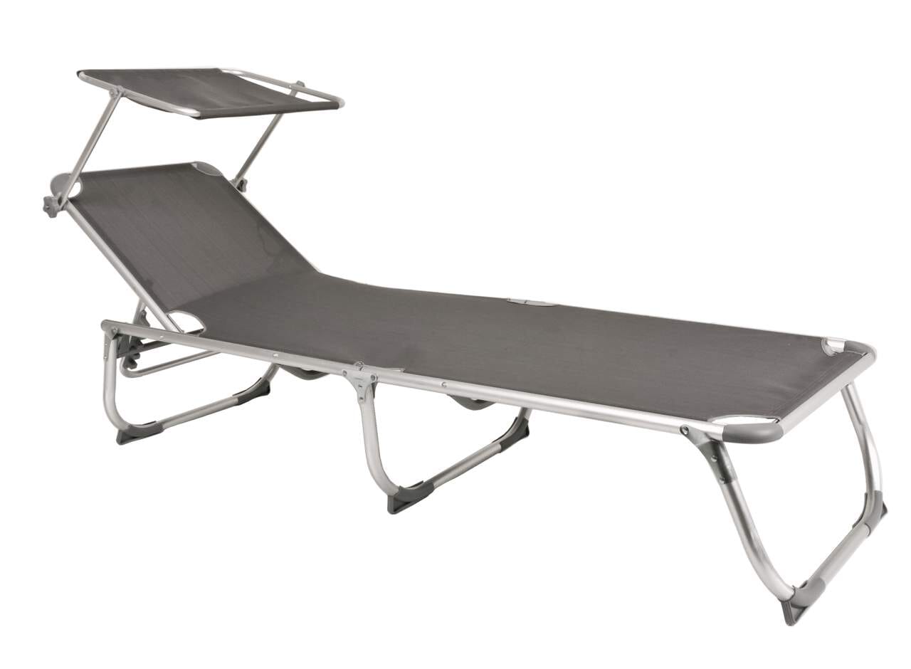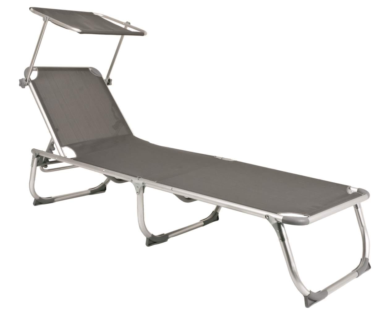 Gartenliege, Campingliege, Sonnenliege KISO Dreibeinliege mit Sonnendach Grau