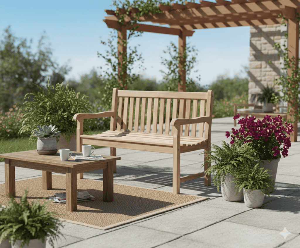 Das Teakholz ist unbehandelt und kann nach Wunsch Natur belassen oder geölt werden.