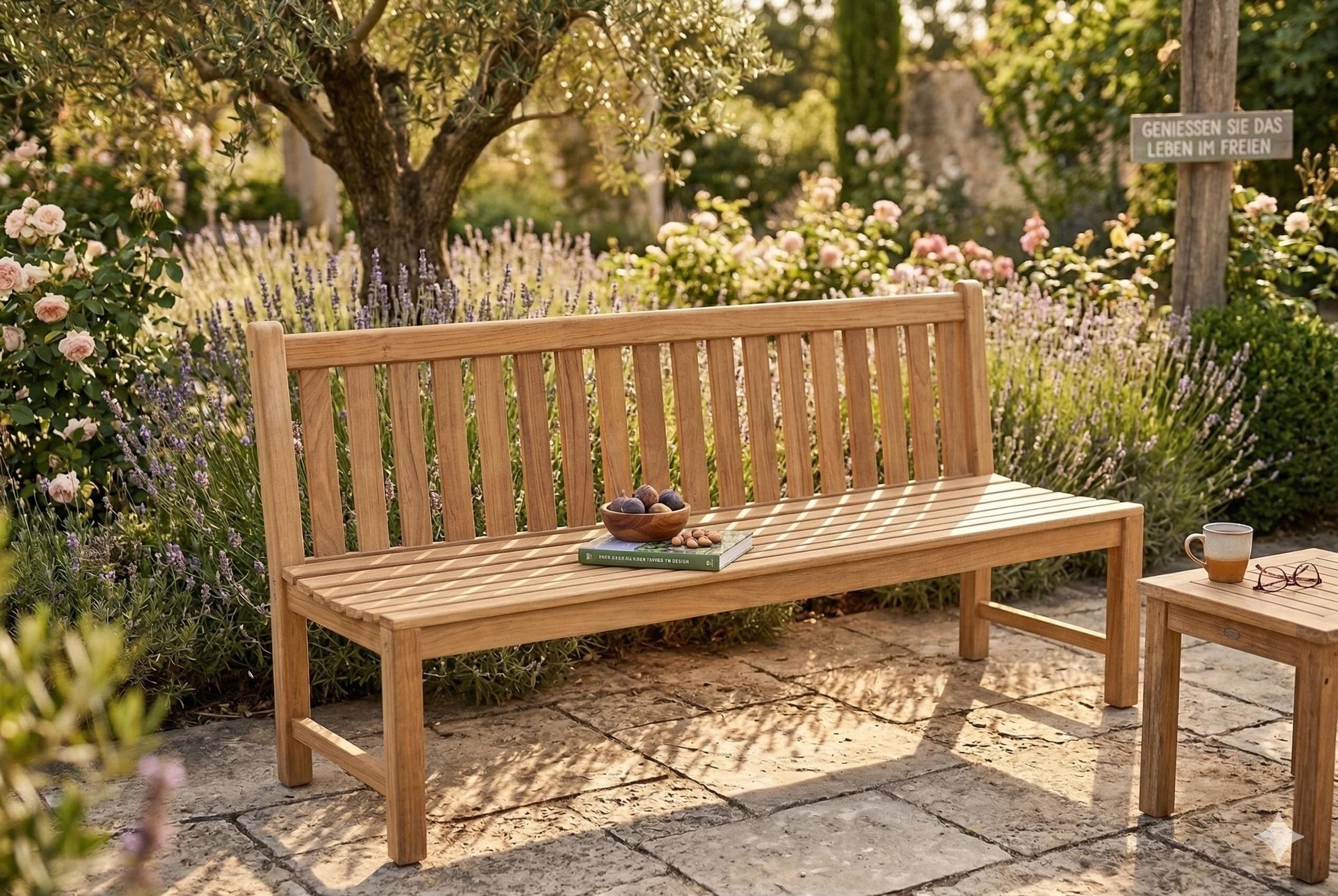 Die Gartenbank Picadelly ist ein Möbelstück aus Premium Teak Holz und ist ideal für Garten, Terrasse und Balkon geeignet.