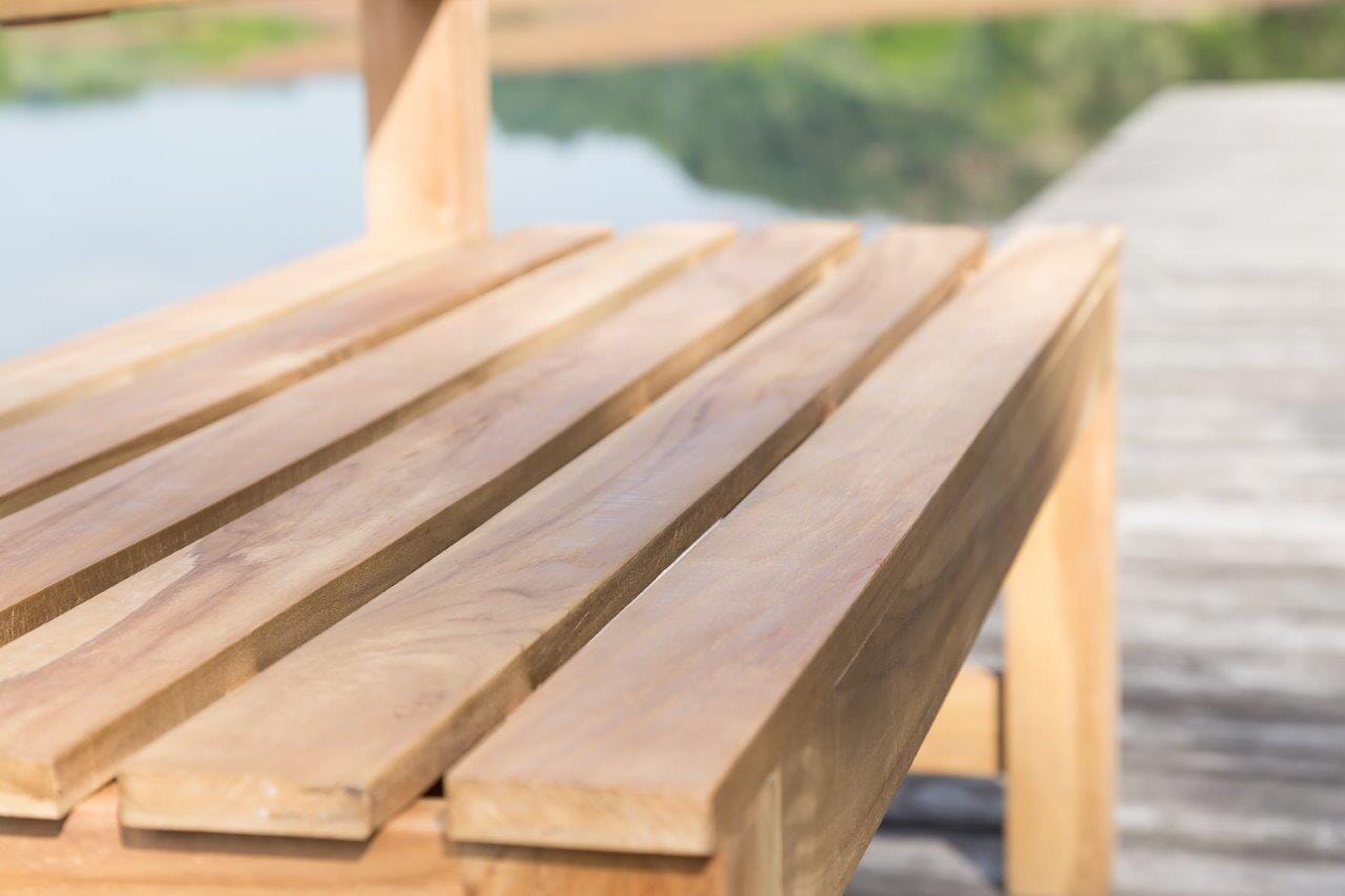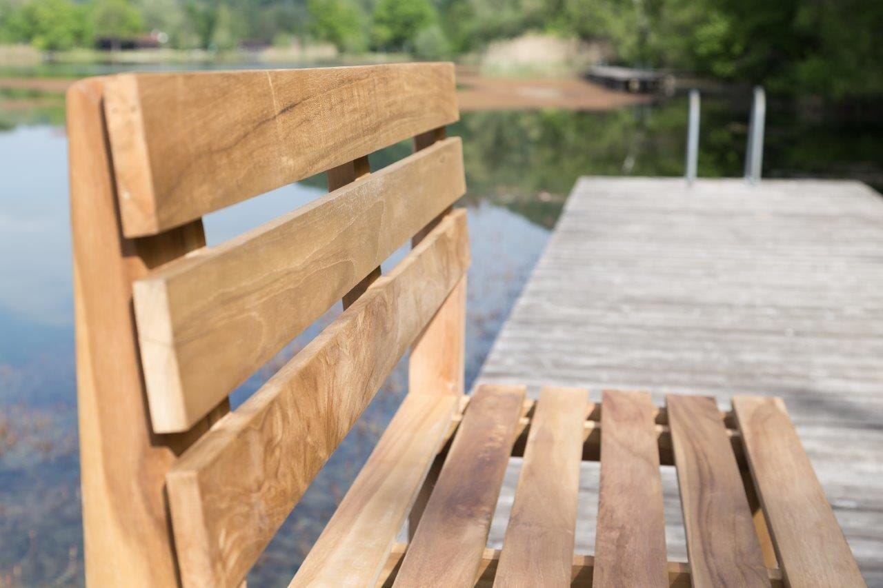 - Unbehandeltes Teakholz, kann Natur belassen oder geölt werden