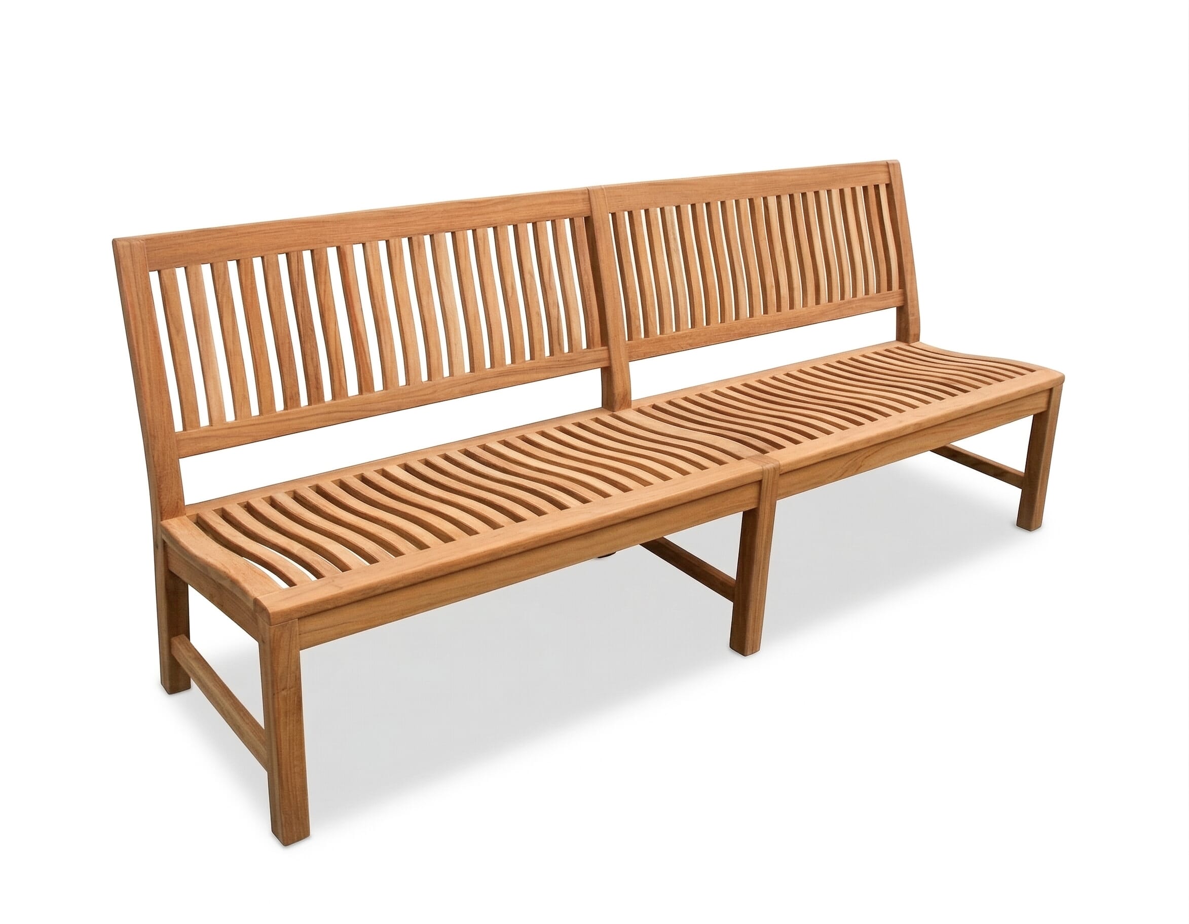 XXL Gartenbank in Premiumteak mit ergonomisch geformten Sitz und Rücken.