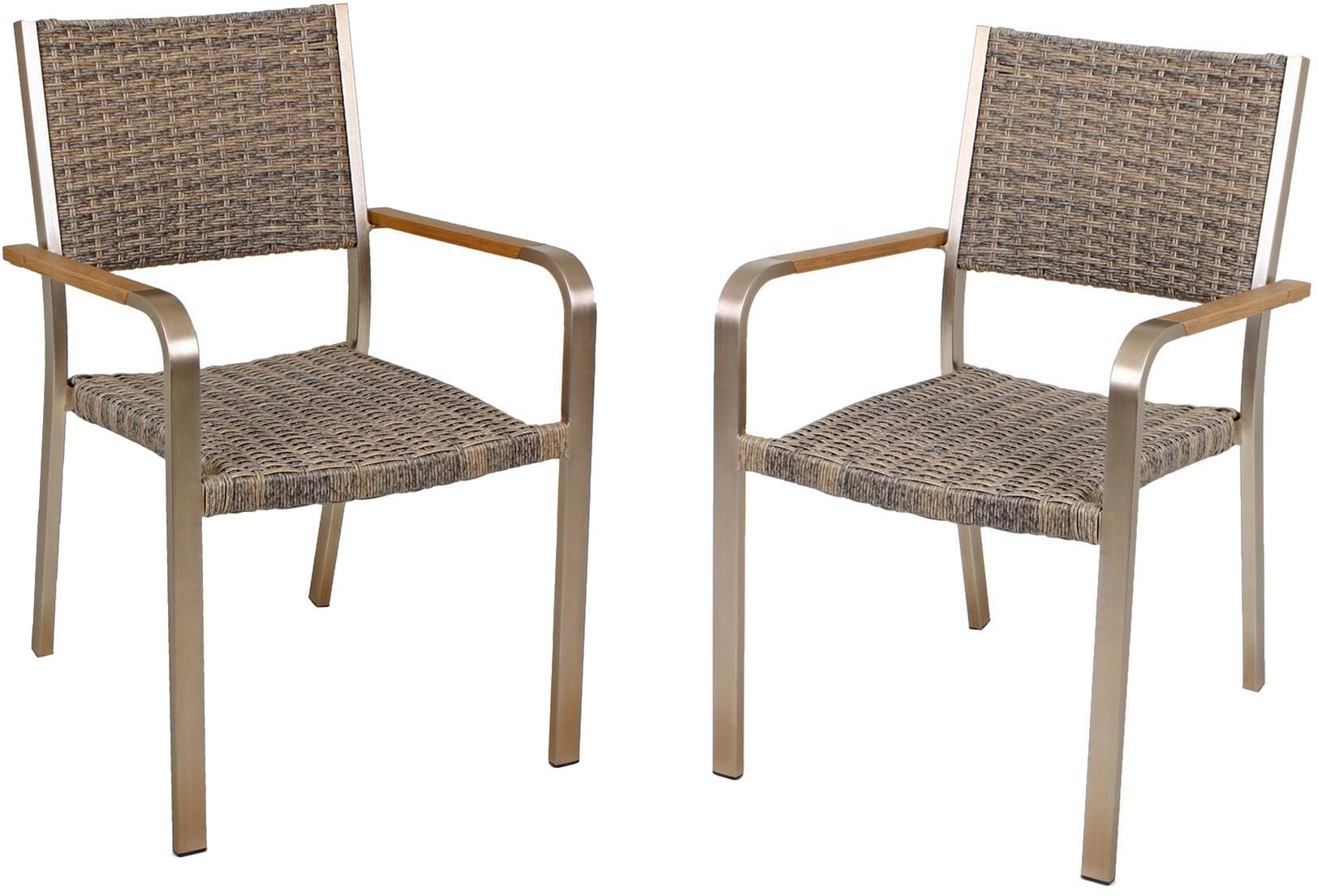 Stapelstuhl FLORENCE 2er Set Alu champagner Kunststoffgeflecht, braun