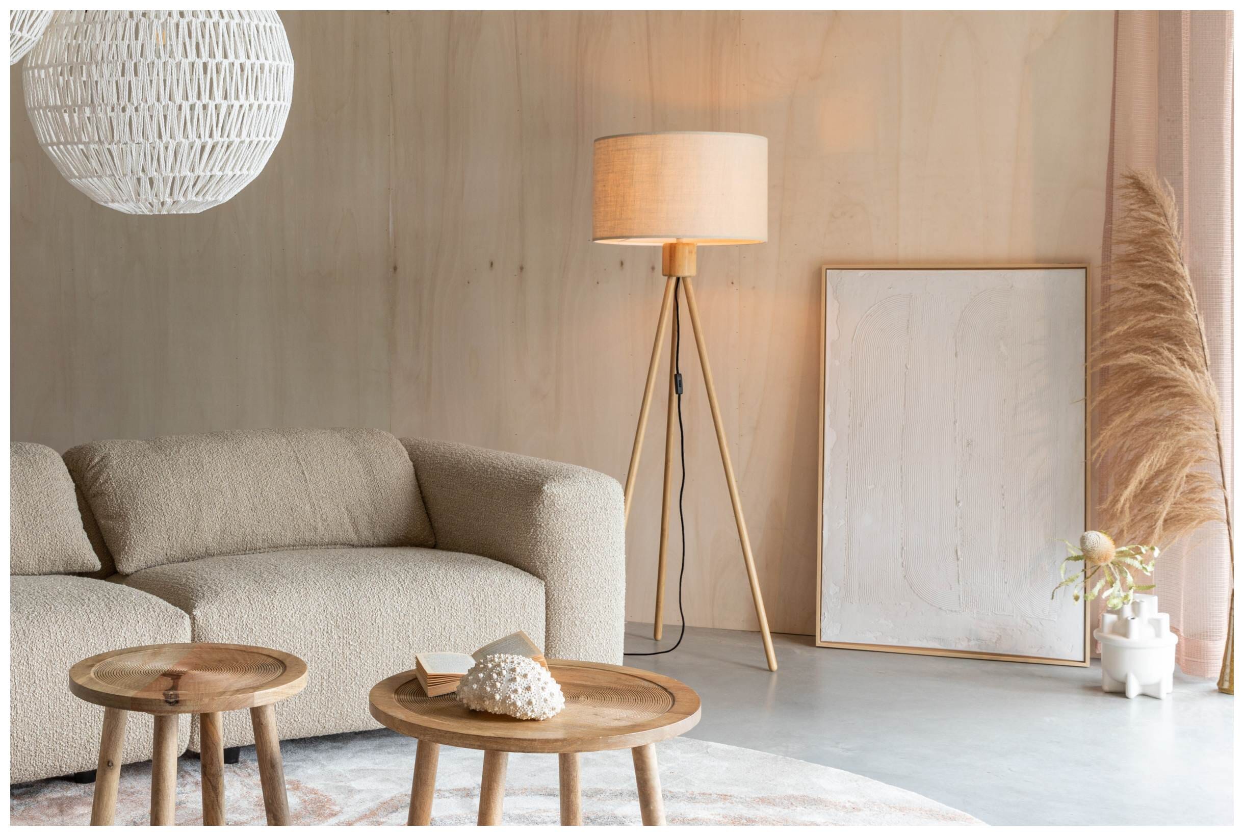 Kombiniert mit einen natürlichen Jute Lampenschirm trifft diese Lampen den aktuellen Zeitgeist natürlicher Materialien.