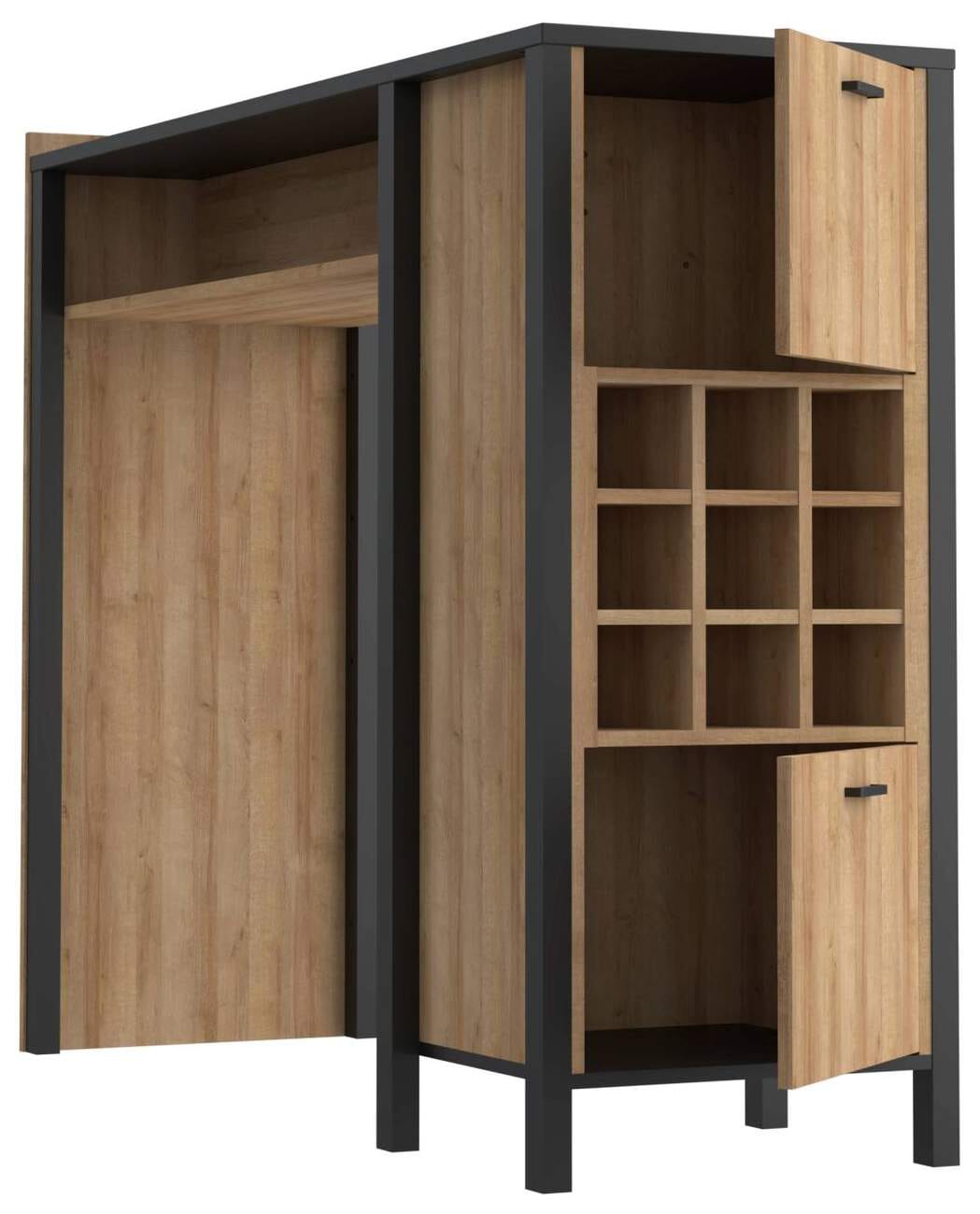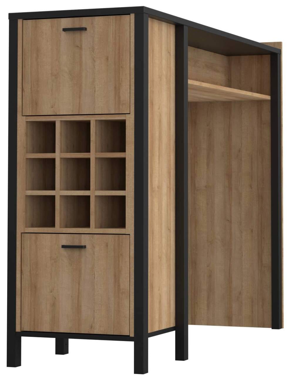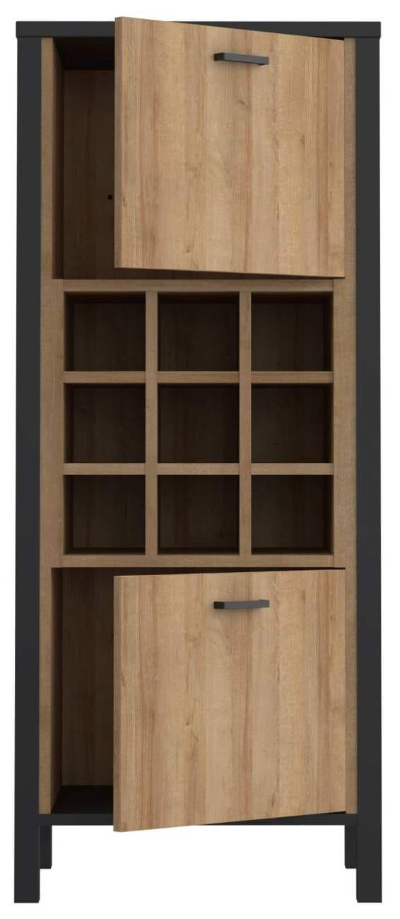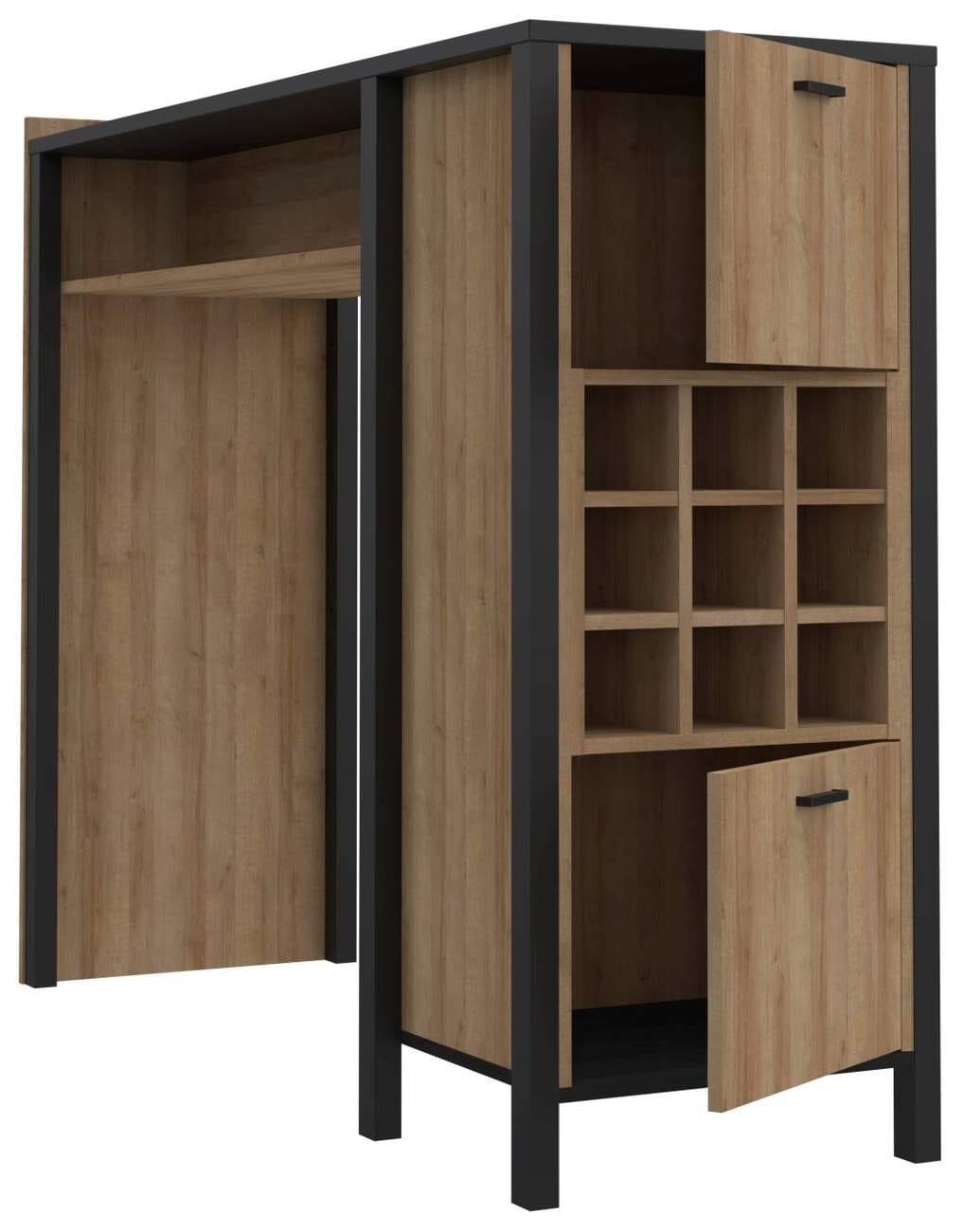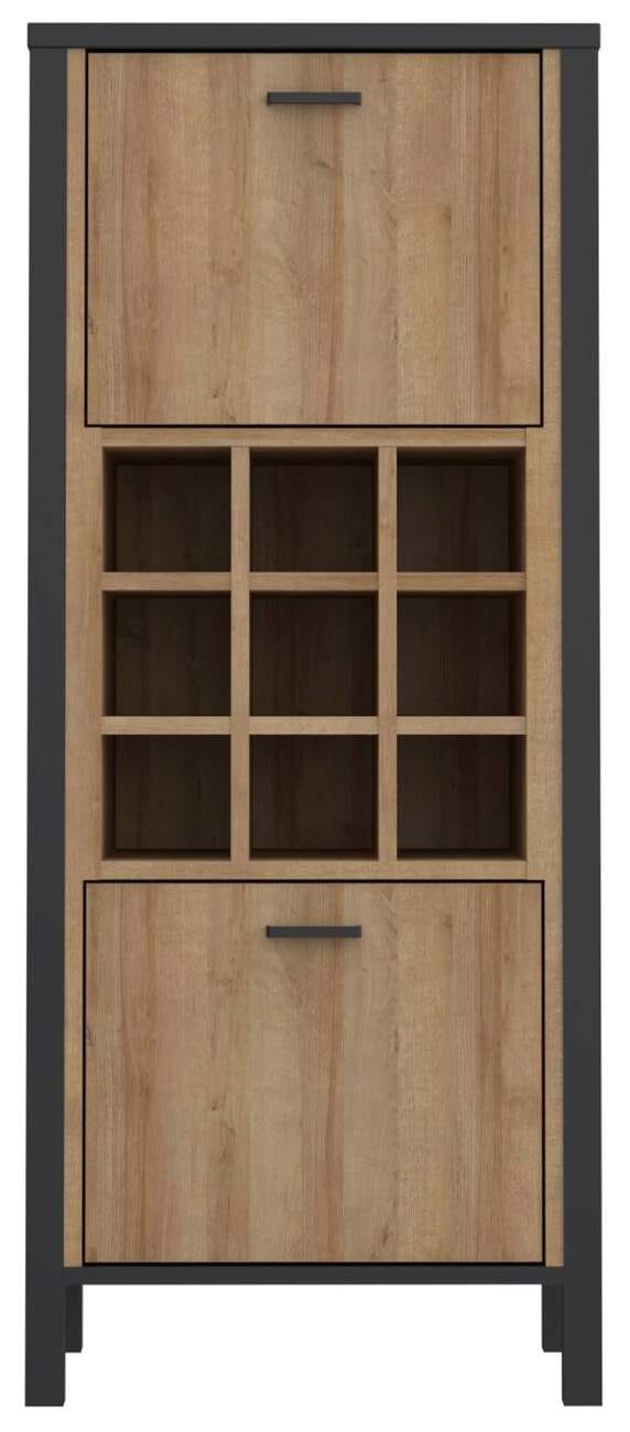 Der stilvoll gestaltete Stehtisch und Bartisch HIGH ROCK hat eine elegante Rahmenoptik und passt in den modern eingerichteten Wohnbereich. Durch die tollen Oberflächen in fein gemaserter Riviera Eiche und in der Farbe schwarz, ist der Tisch ein Blickfang für stilvoll eingerichtete Wohn- oder Esszimmer. Auch für eine große Wohnküche ist er ideal. Viel Stauraum bietet der Stehtisch in zwei großen Fächern hinter zwei Drehtüren. Ein offenes Fach, das neunfach unterteilt ist, kann als Depot für die guten Tropfen des Hauses genutzt werden.