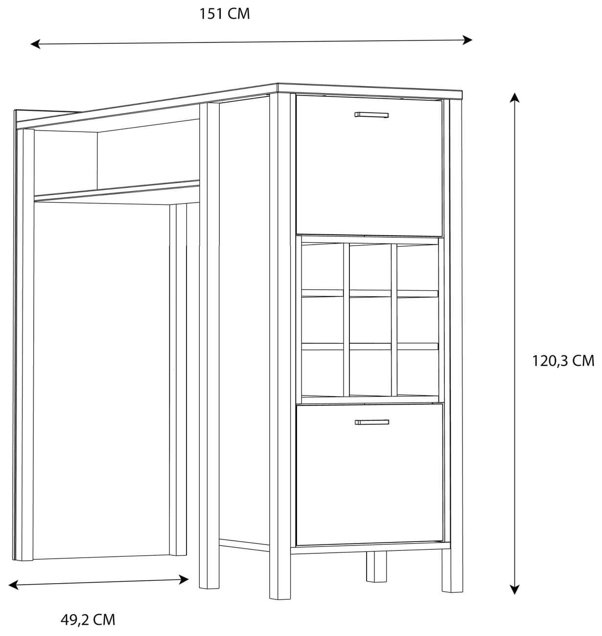 Der hochwertig verarbeitete Steh- und Bartisch ist aus stabiler Spanplatte gefertigt. Die Oberflächen und Kanten des Tischs sind in zwei verschiedenen Dekoren beschichtet. Die Beschläge der Türen und die Griffe an der Front des Tischs sind aus Metall hergestellt.