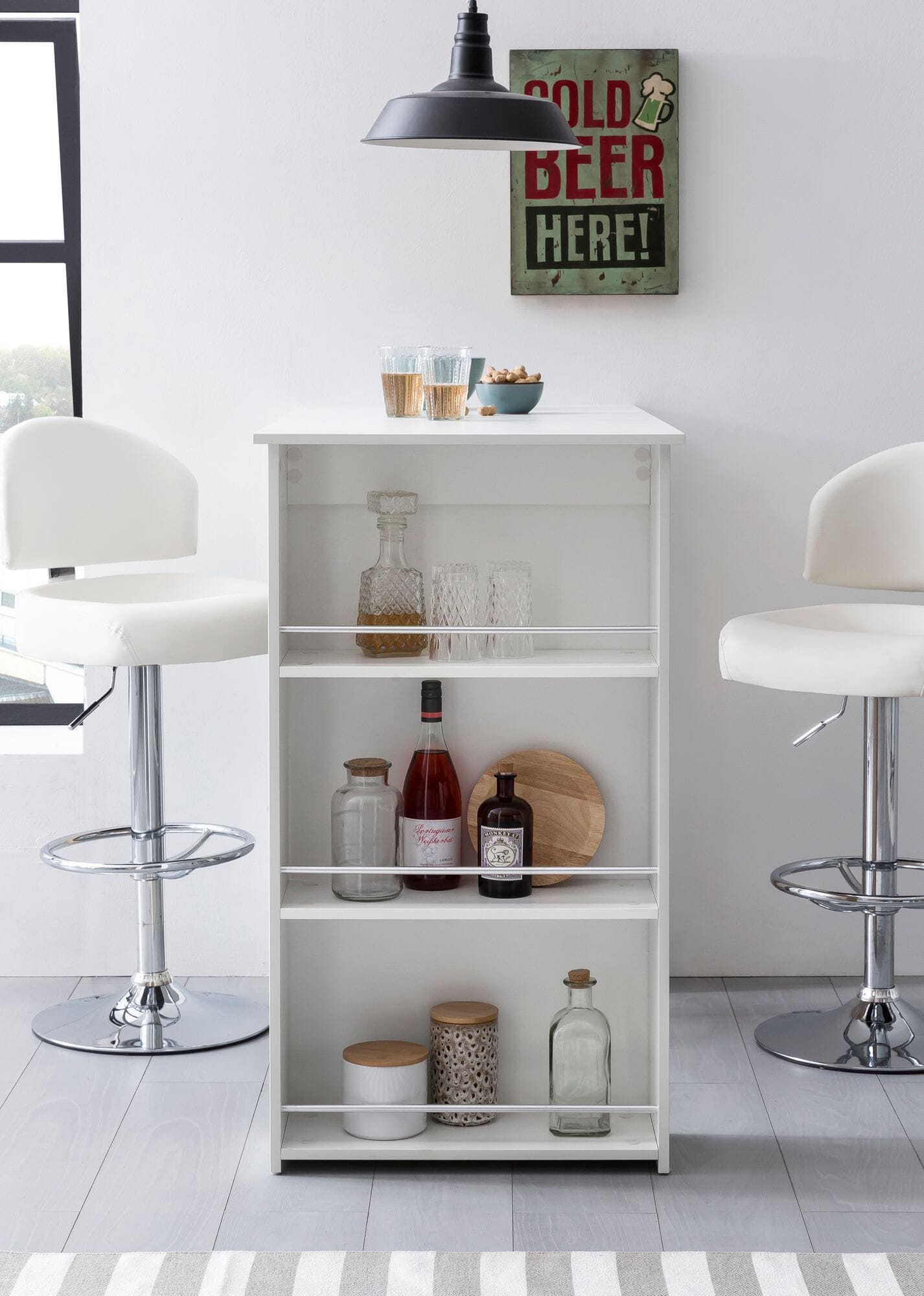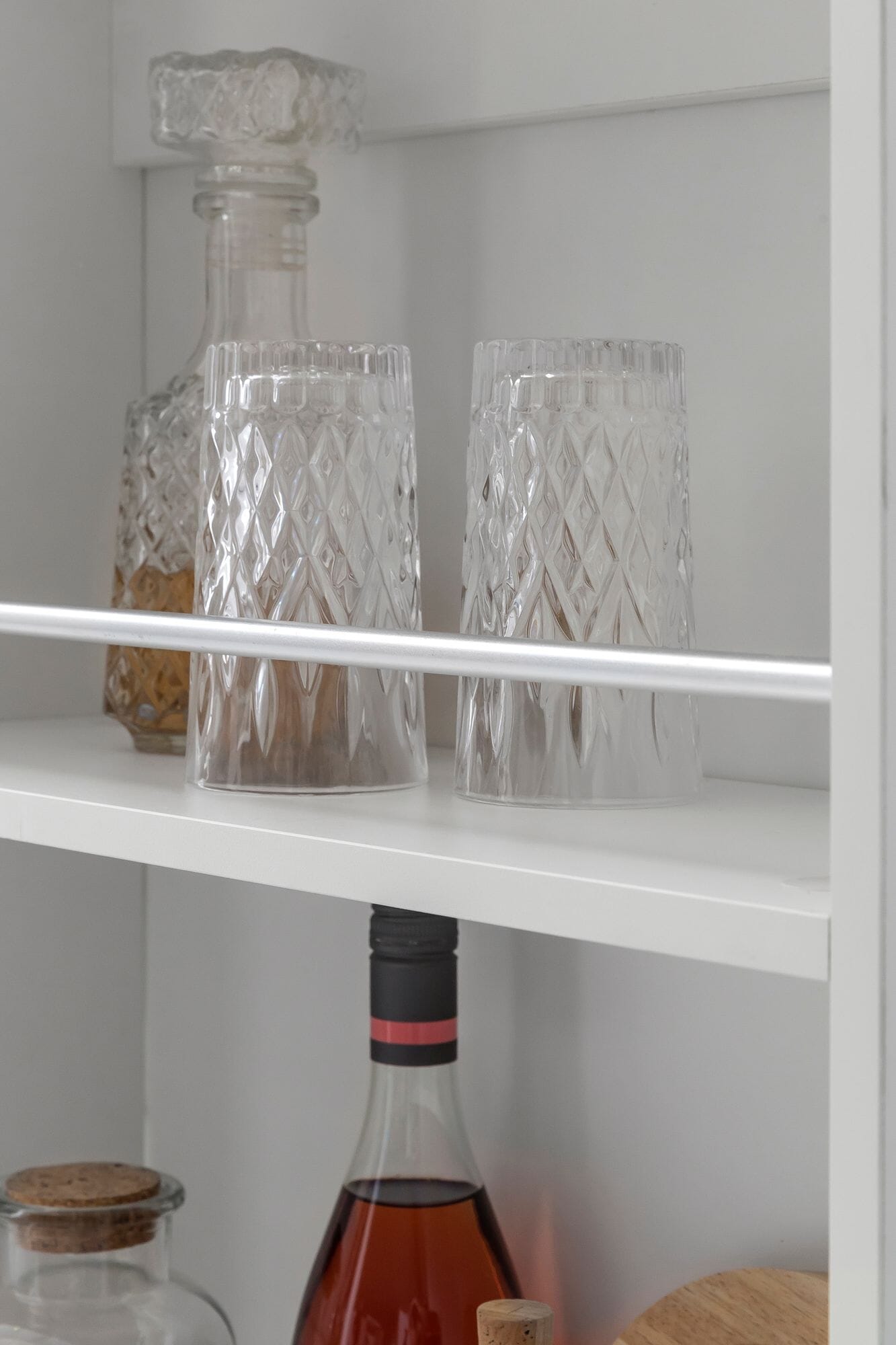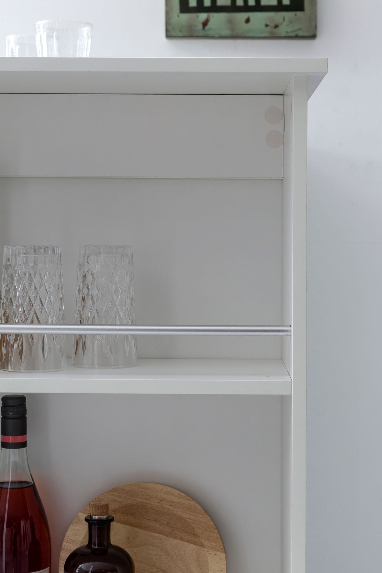 - Drei Fächer zur Unterbringung von Weinflaschen, Gläser und Küchenutensilien
