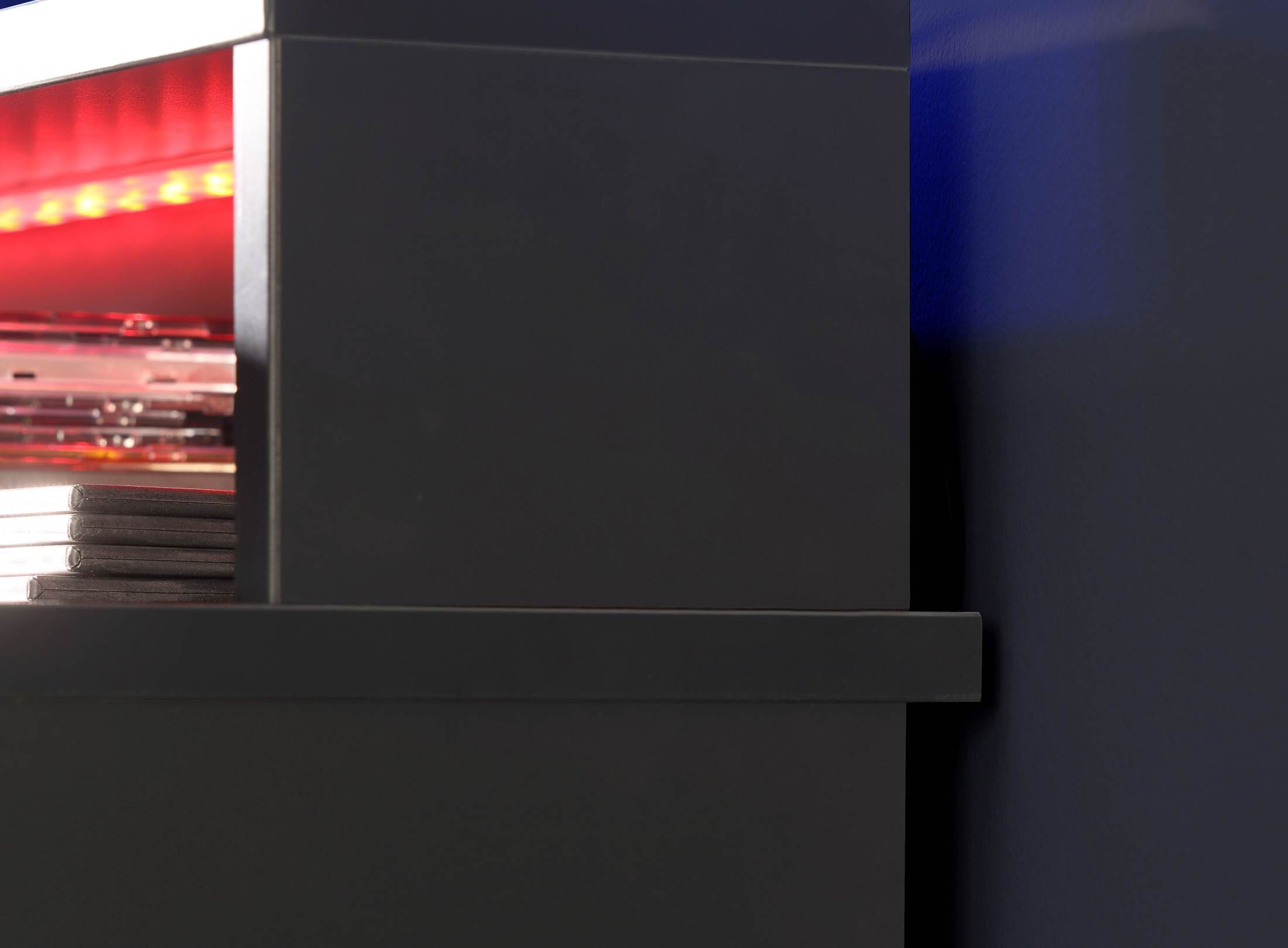 Nicht nur modern, schon futuristisch mutet Ihr Arbeitsplatz am LED beleuchteten Tezaur 5B Gaming Tisch an. Dieser außergewöhnliche Computertisch ist nicht nur ein besonderer Hingucker, sondern bietet Ihnen ein auch hohes Maß an Arbeitskomfort: Die Arbeitsfläche aus beschichteter Spanplatte gewährt genügend Platz für Tastatur, Unterlagen und Gaming Zubehör, während auf einer zweiten Ebene sogar mehrere Monitore Platz finden.