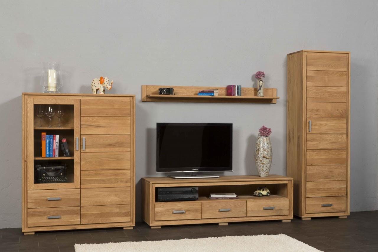 TV Lowboard Basel mit 3 Schubläden - Wildeiche Massivholz geölt