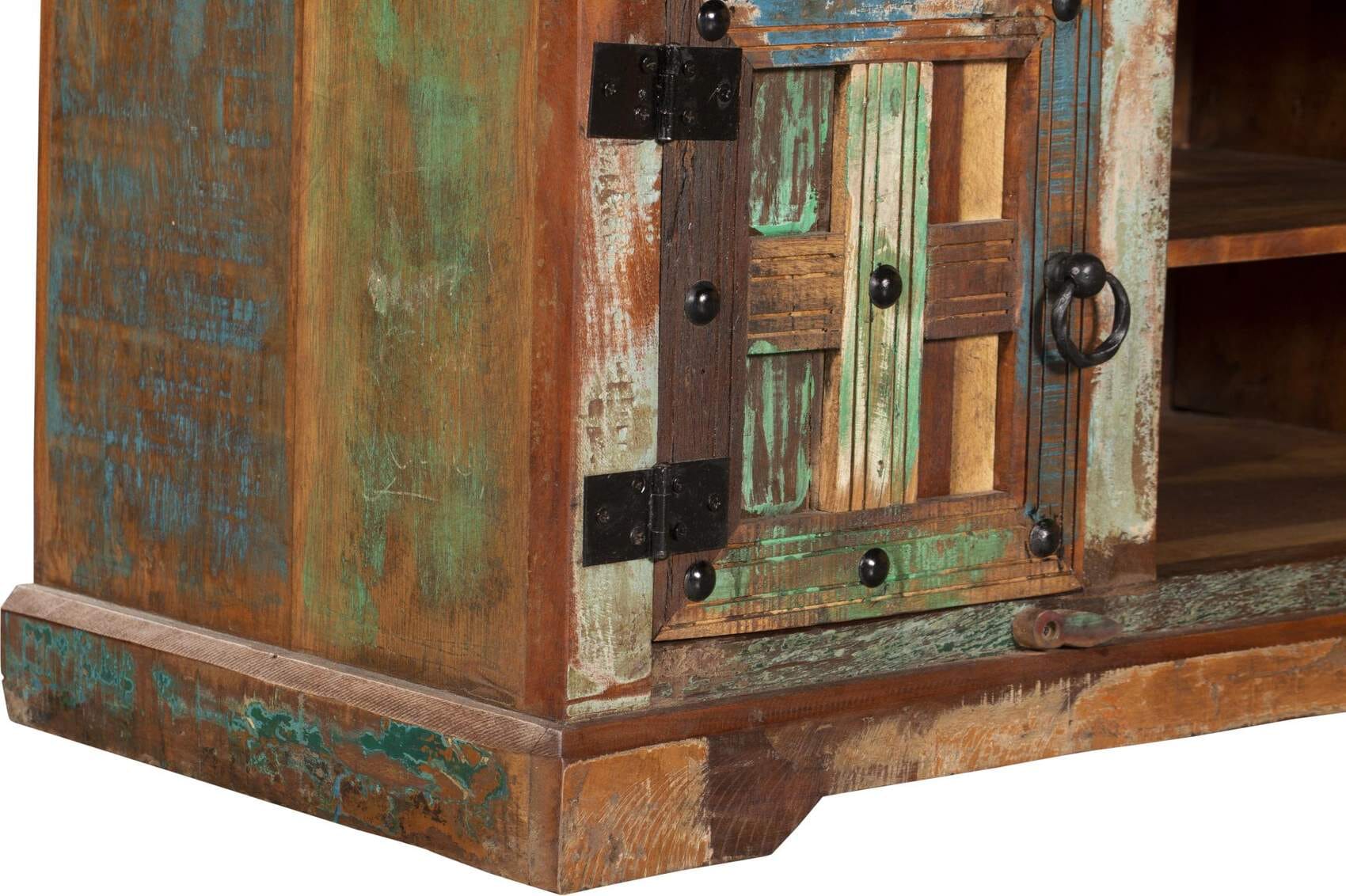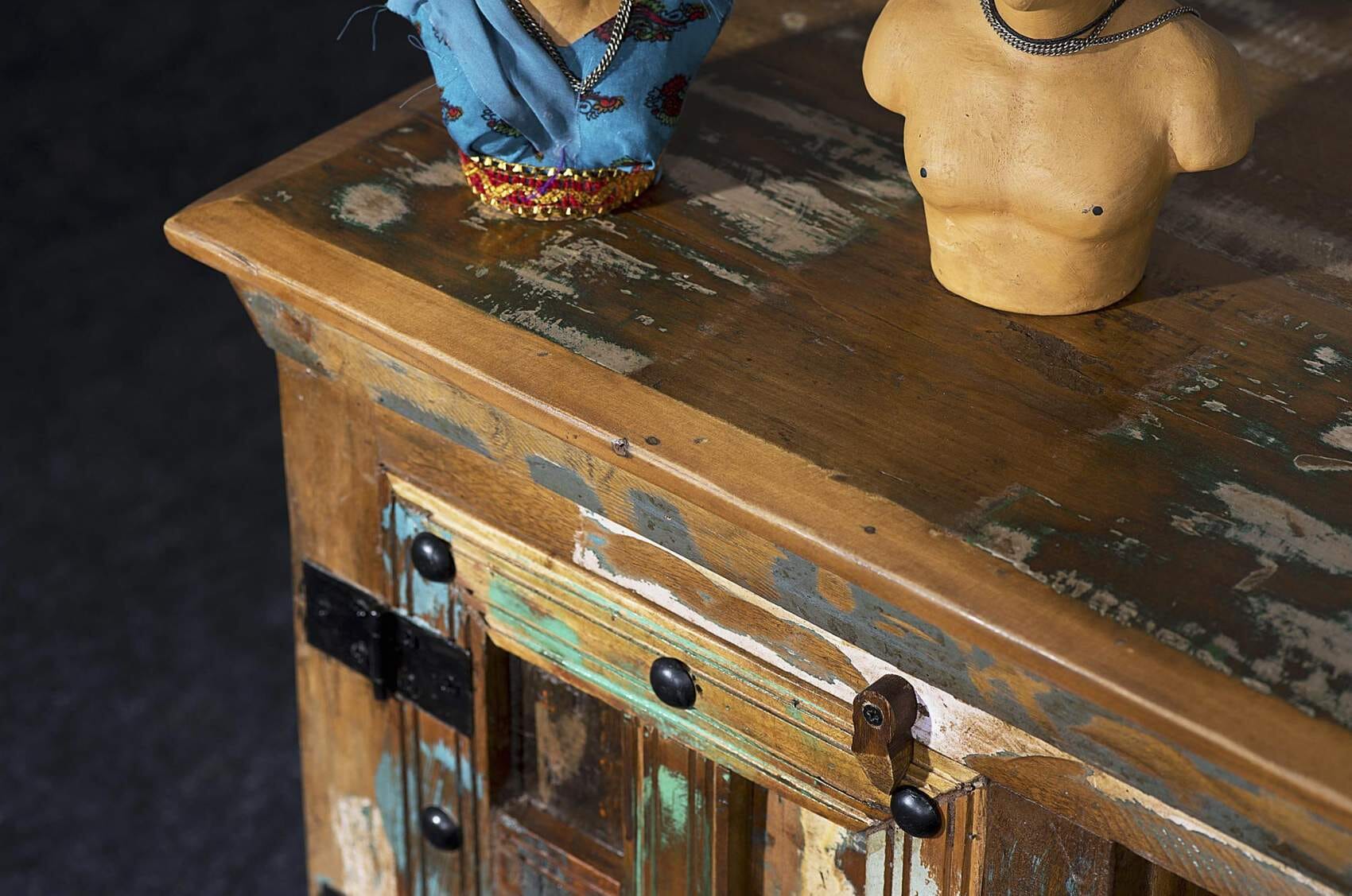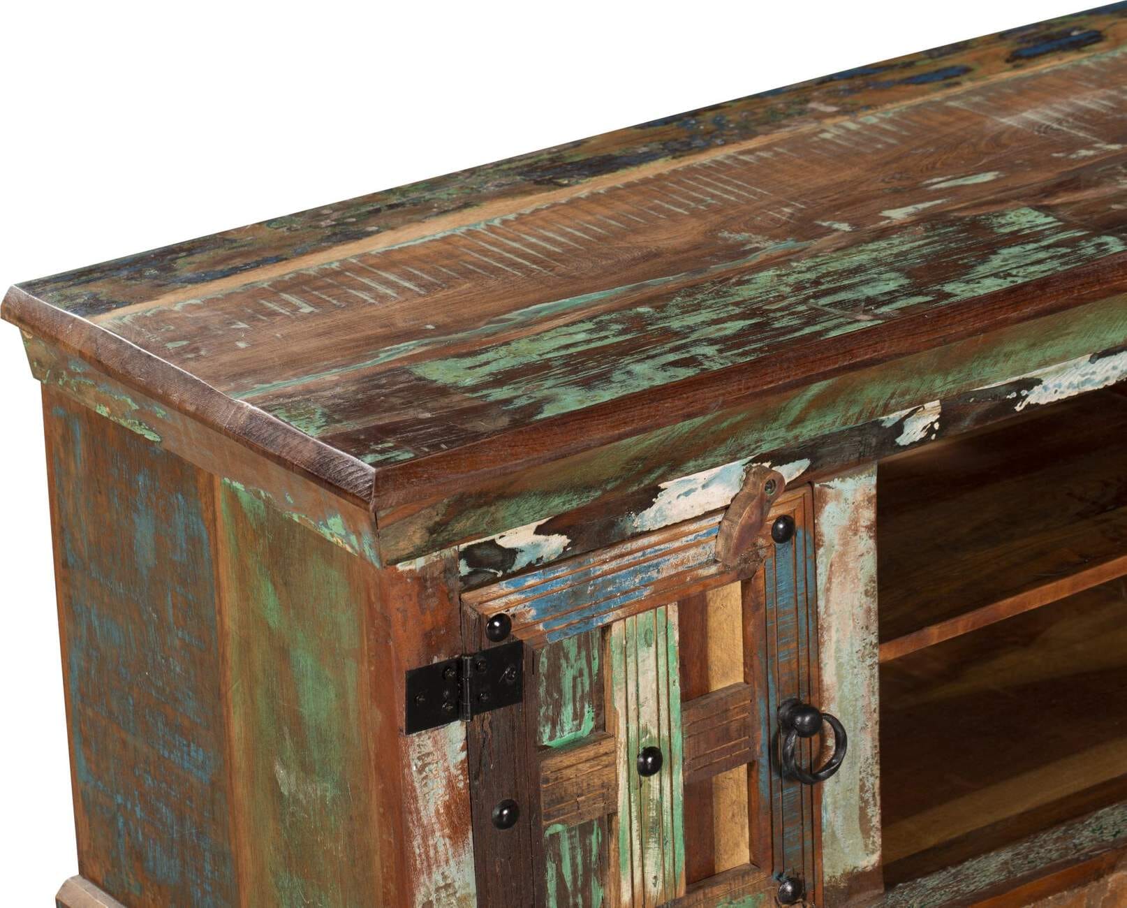 Das aufregende Trendholz aus recycelter Mango wird alle Blicke auf sich ziehen. Der dezent wirkende TV-Schrank wirkt durch das wunderschöne aufbereitete Holz authentisch und versprüht einen natürlichen Charme. Die Metallbeschläge und Griffe geben dem Lowboard KAILAS ein stylisches Vintage Aussehen.