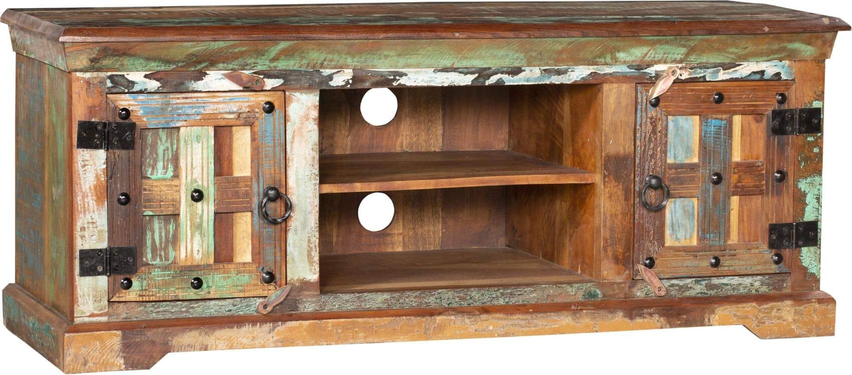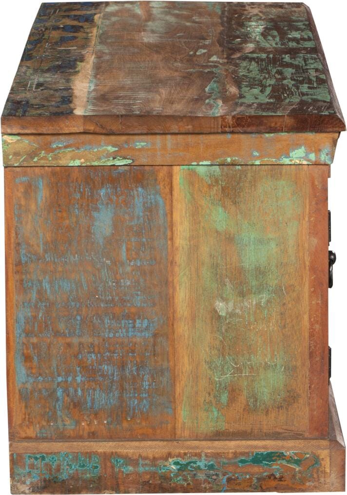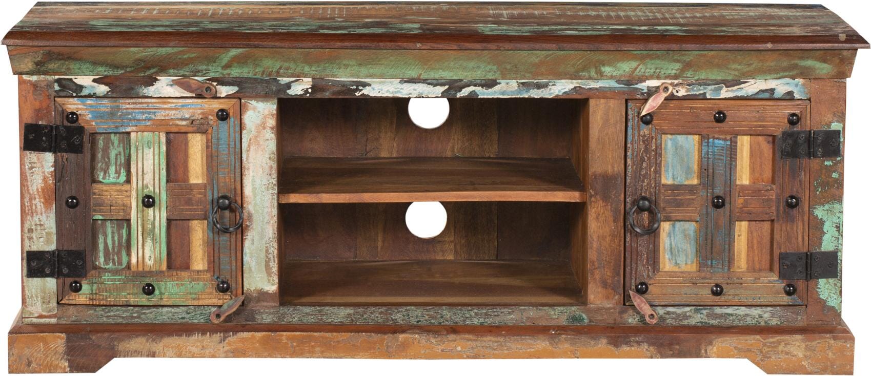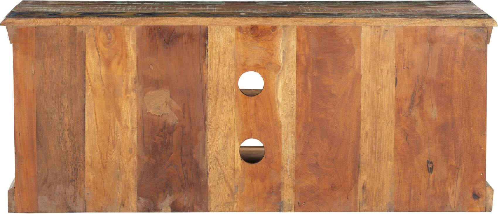 Das aufregende Trendholz aus recycelter Mango wird alle Blicke auf sich ziehen. Der dezent wirkende TV-Schrank wirkt durch das wunderschöne aufbereitete Holz authentisch und versprüht einen natürlichen Charme. Die Metallbeschläge und Griffe geben dem Lowboard KAILAS ein stylisches Vintage Aussehen.