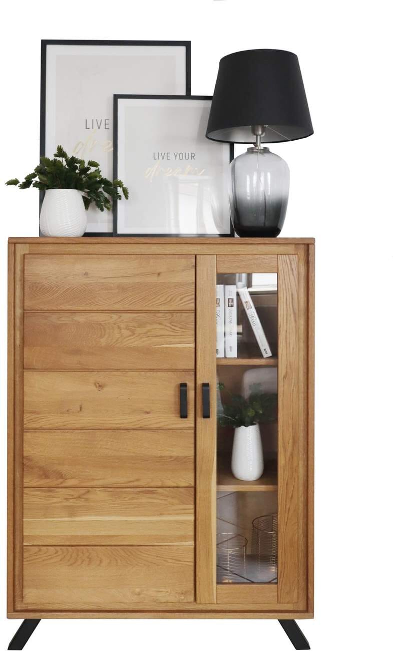 Highboard Vitrine BERN 2-türig Wildeiche Massivholz geölt