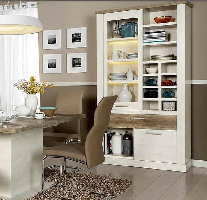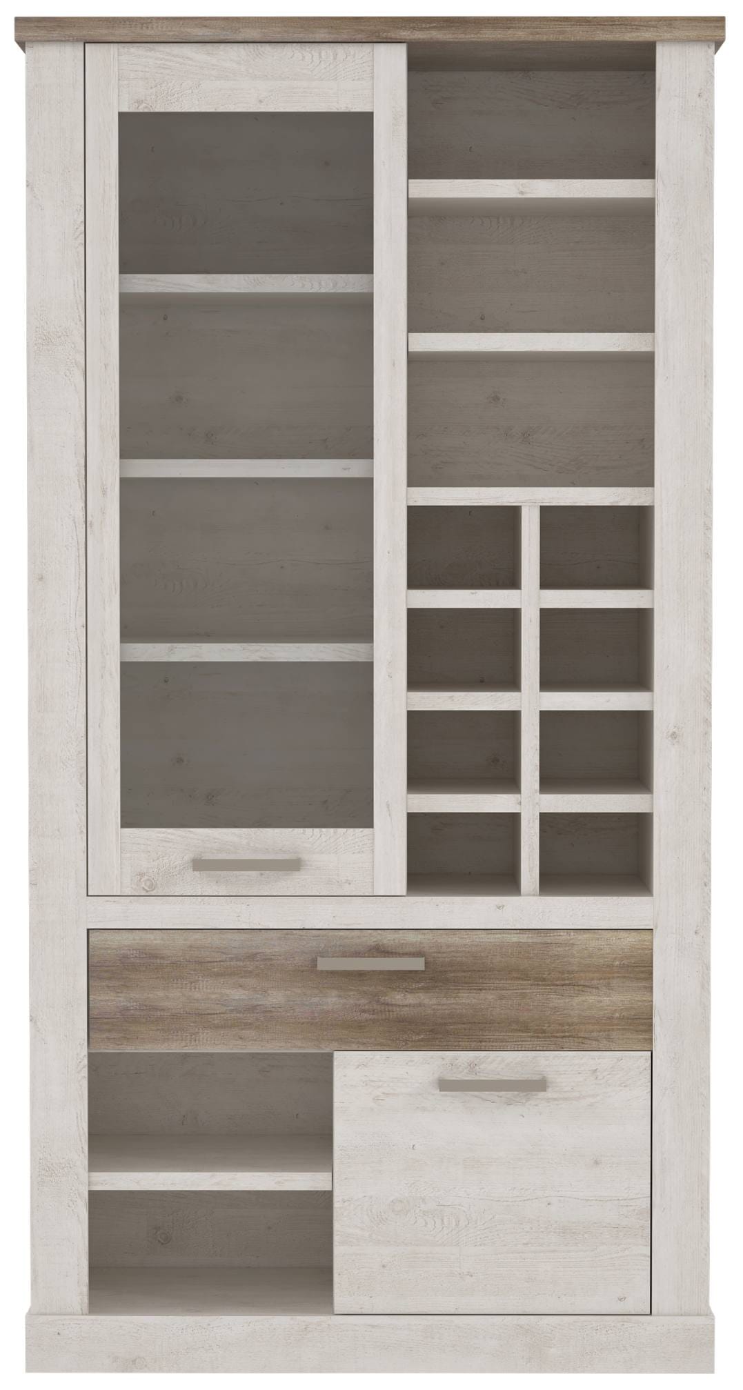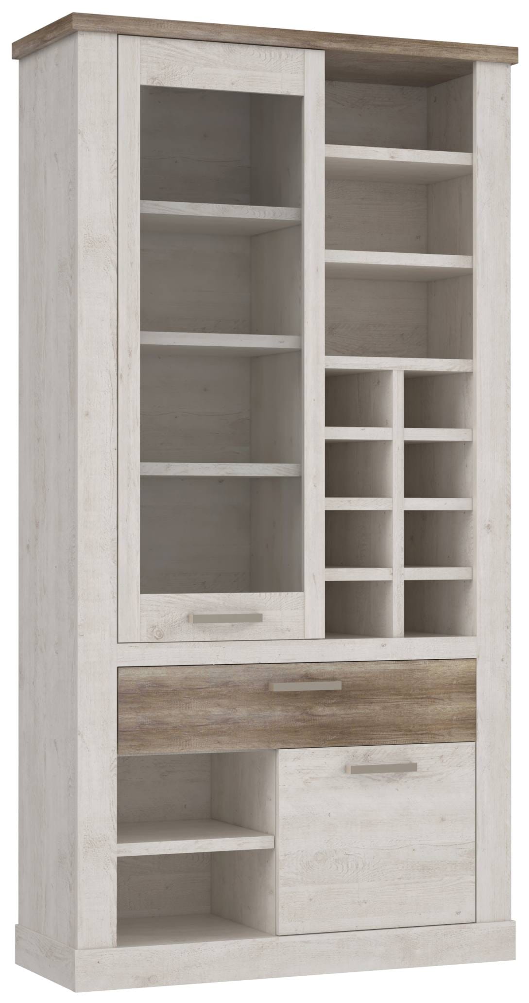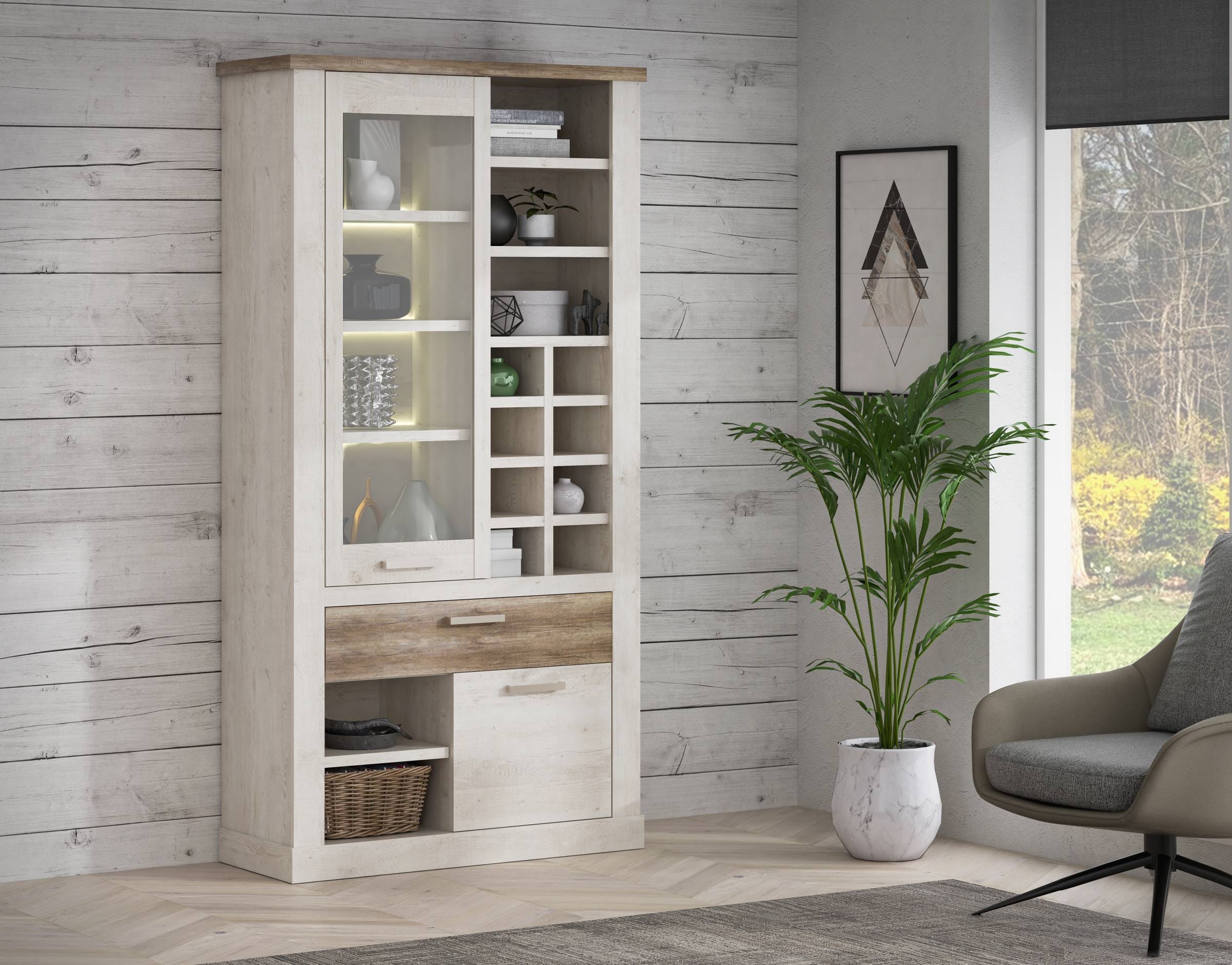 Vitrine DURO 2 Türen Schrank mit Regaleinteilung Pinie weiß antik