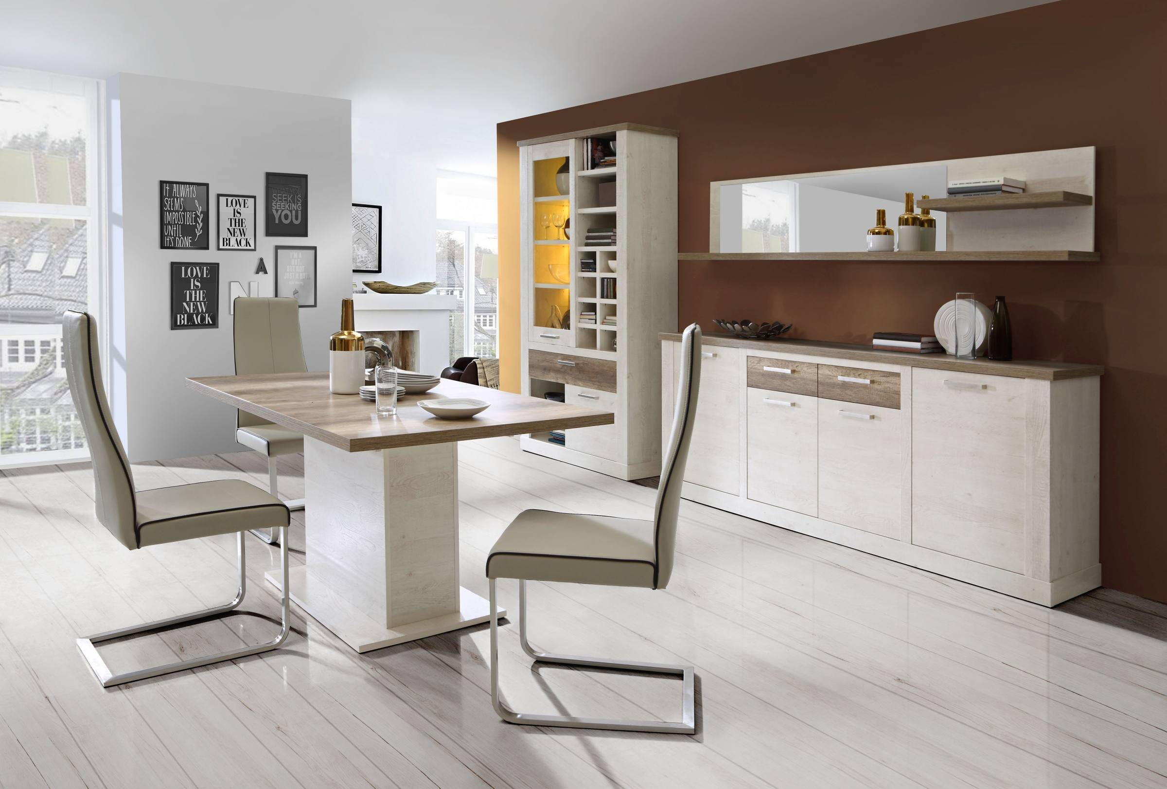Das Äußere ist aber auch recht nett. Weiße Pinie und Eichte antik geben sich ein Stelldichein und sorgen für einen freundlichen Glanzpunkt in Ihrem Wohnzimmer oder auch im Flur. Der Vitrinenschrank DURO von Forte bietet Ihnen aber nicht nur eine schöne Optik, sondern auch noch einige praktische Details. Die beiden Türen weisen Metall-Scharniere auf, und vernickelte Aluminium-Griffe runden das Möbelstück ab. Fangen Sie ruhig gedanklich an, die Vitrine einzuräumen!