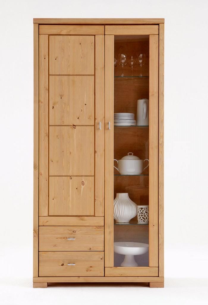 Vitrine VITA 1 Holztür + 1 Glastür, 2 Schubladen Kiefer massiv