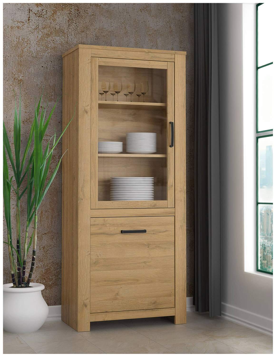 Vitrine HAVANNA 2 Türen 3 Einlegeböden Optik: Alteiche von Forte