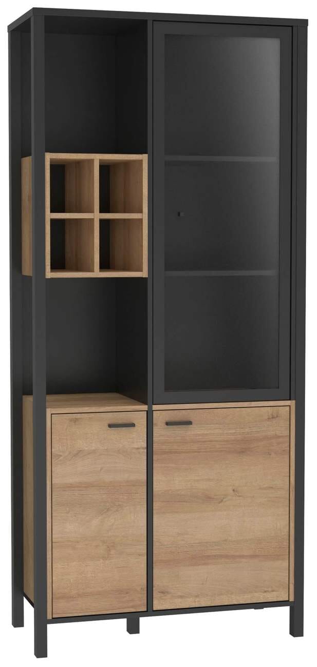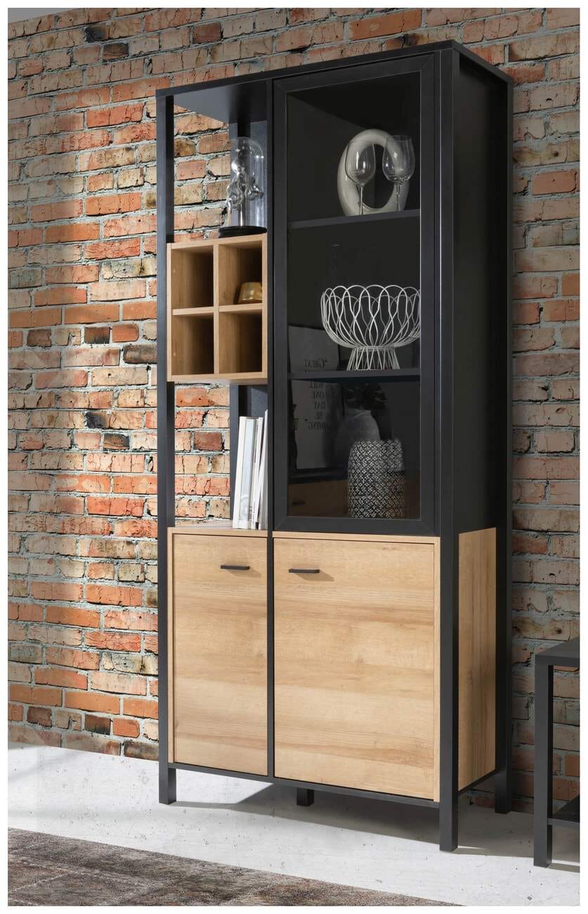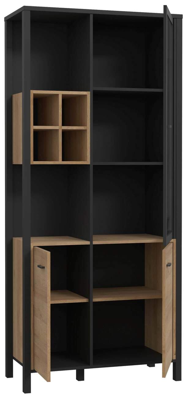 Vitrine HIGH ROCK, 3-trg. und offene Facheinteilung, Riviera Eiche Optik / Schwarz von Forte