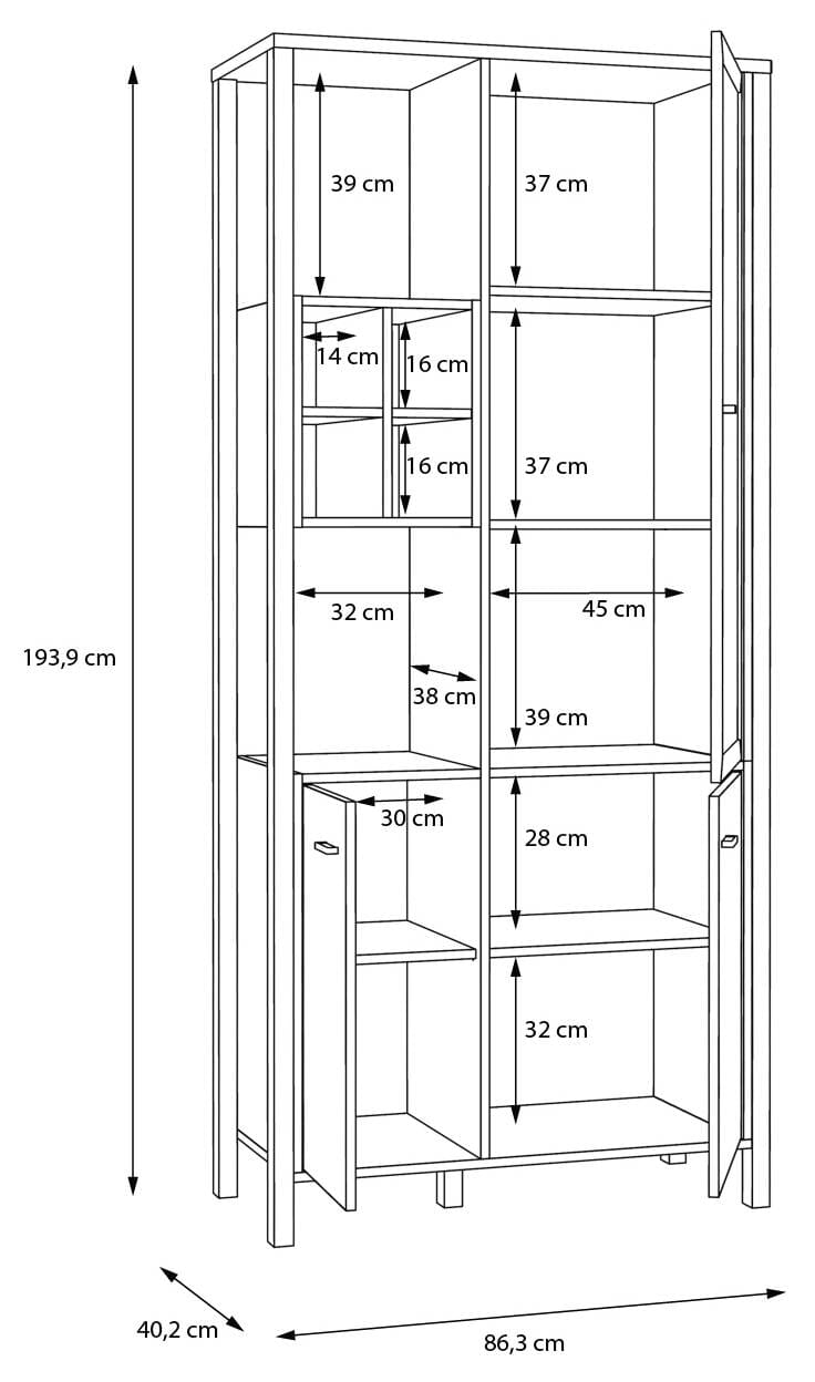 - Maße: B/H/T 86,3 x 193,9 x 40,2 cm