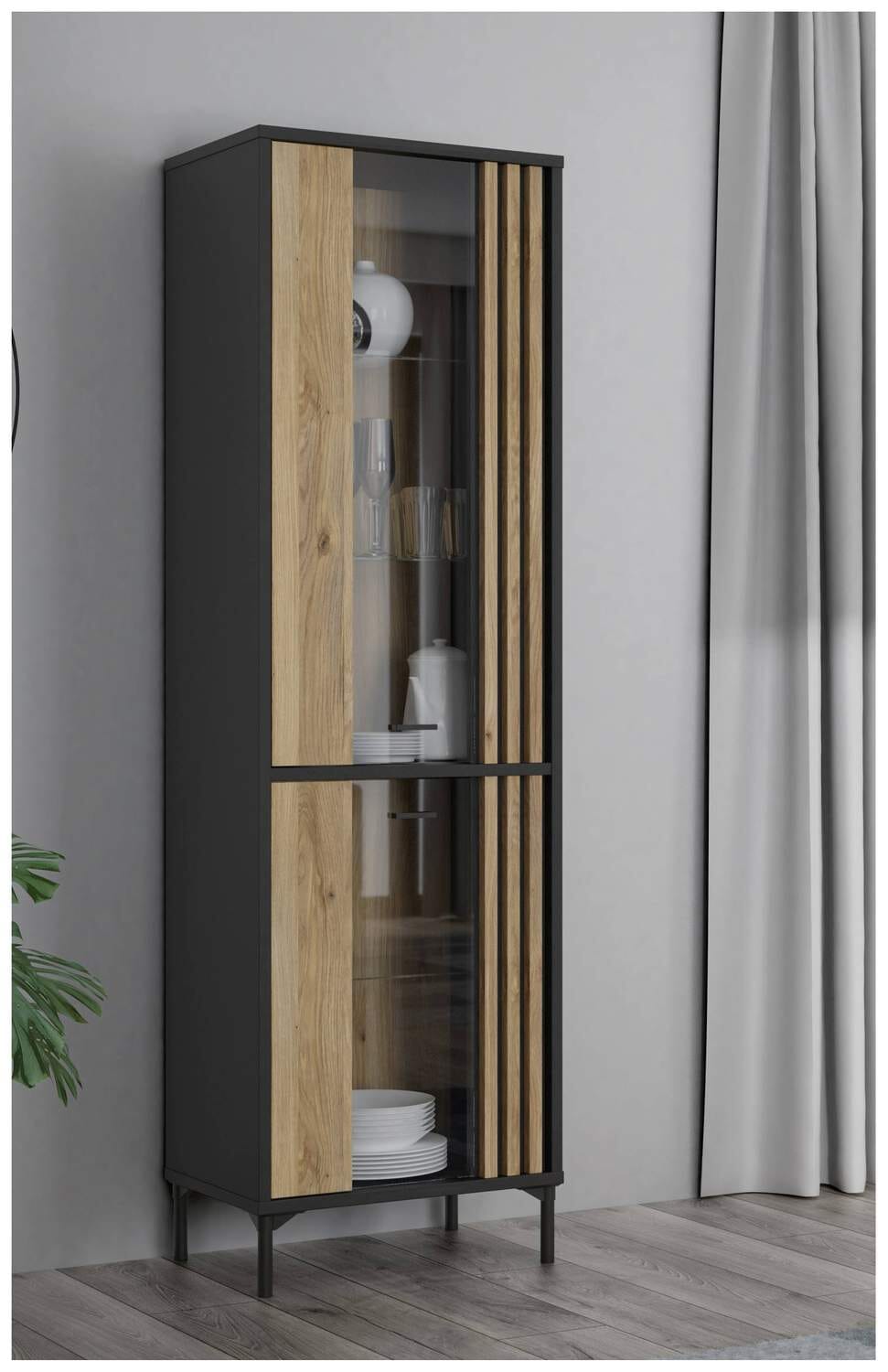 Vitrine JOAKIMIS mit 2 Türen in Schwarz / Mauvella Eiche Optik, Forte