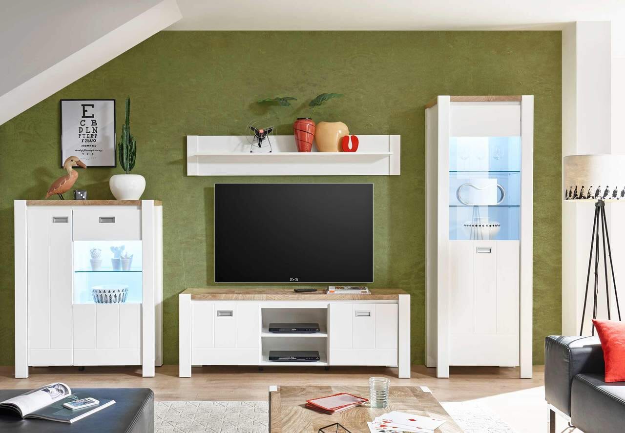 MELLY Vitrine hoch Weiß / Eiche Optik