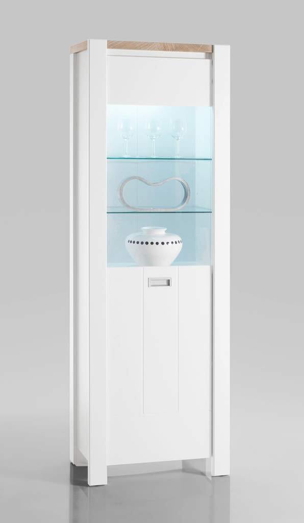 Vitrine MELLY 1-trg. Weiß / Eiche Dekor
