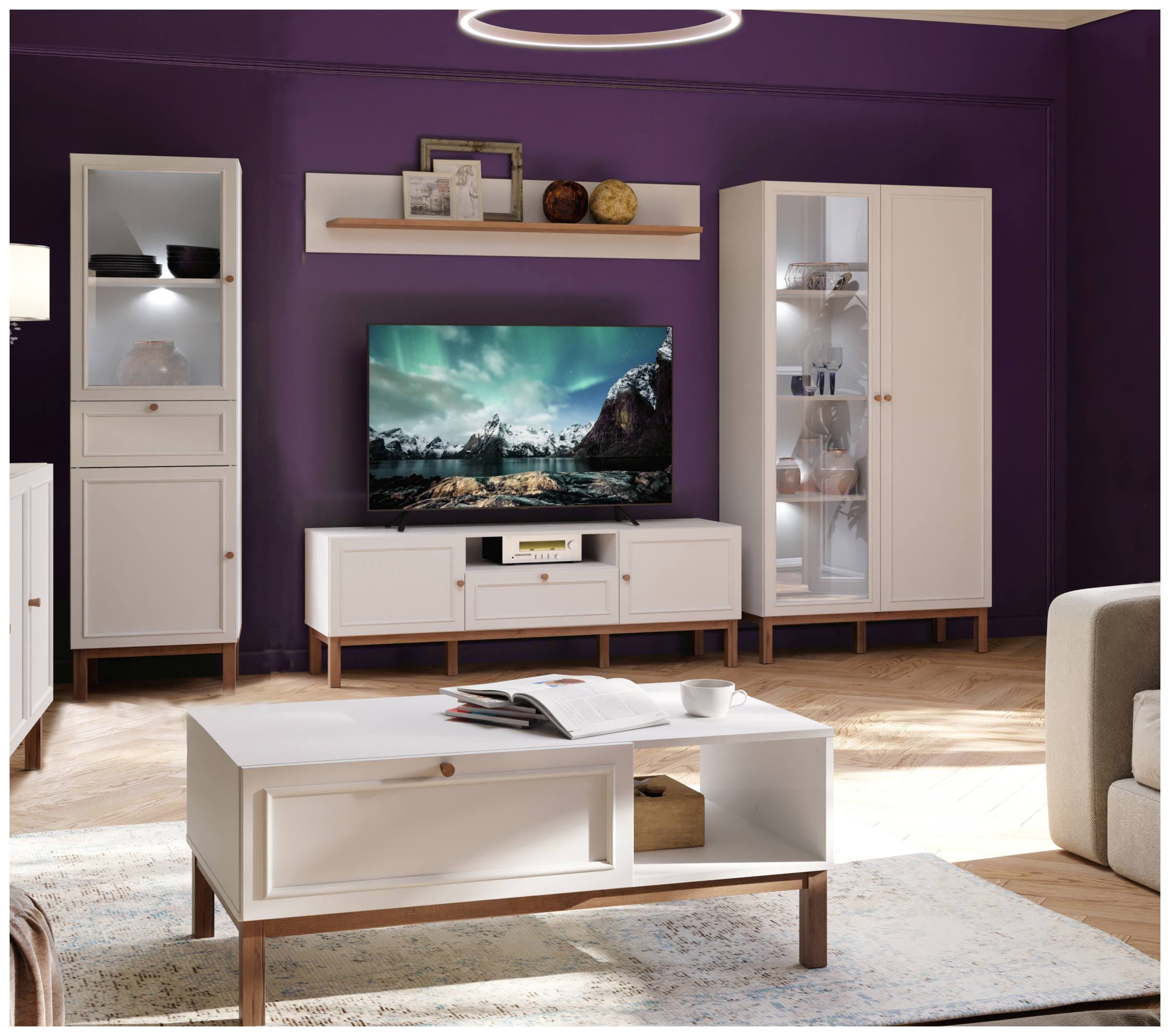 Ein klares Design, eine schöne, sich gut an jedes Interieur anpassende Farbe: Die Vitrine PENKRIDGE ist ein Möbel, das modern und ansehnlich ist. Aber damit nicht genug, denn der Innenraum bietet jede Menge Platz, und hinter der Glastür kommen Ihre Lieblingsstücke gut zur Geltung.