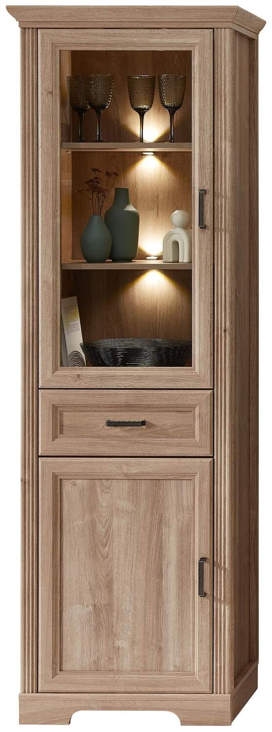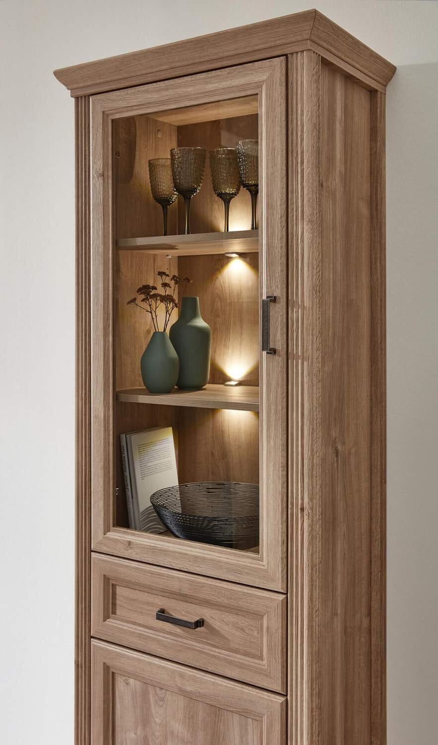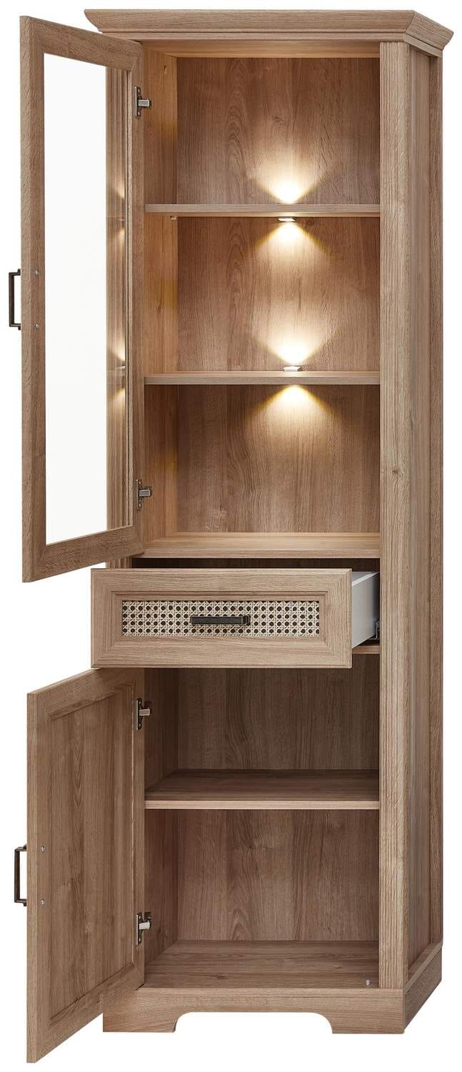Landhaus Vitrine Vienna 1-türig - Karlstad Eiche Nachbildung und wahlweise Wiener Geflecht
