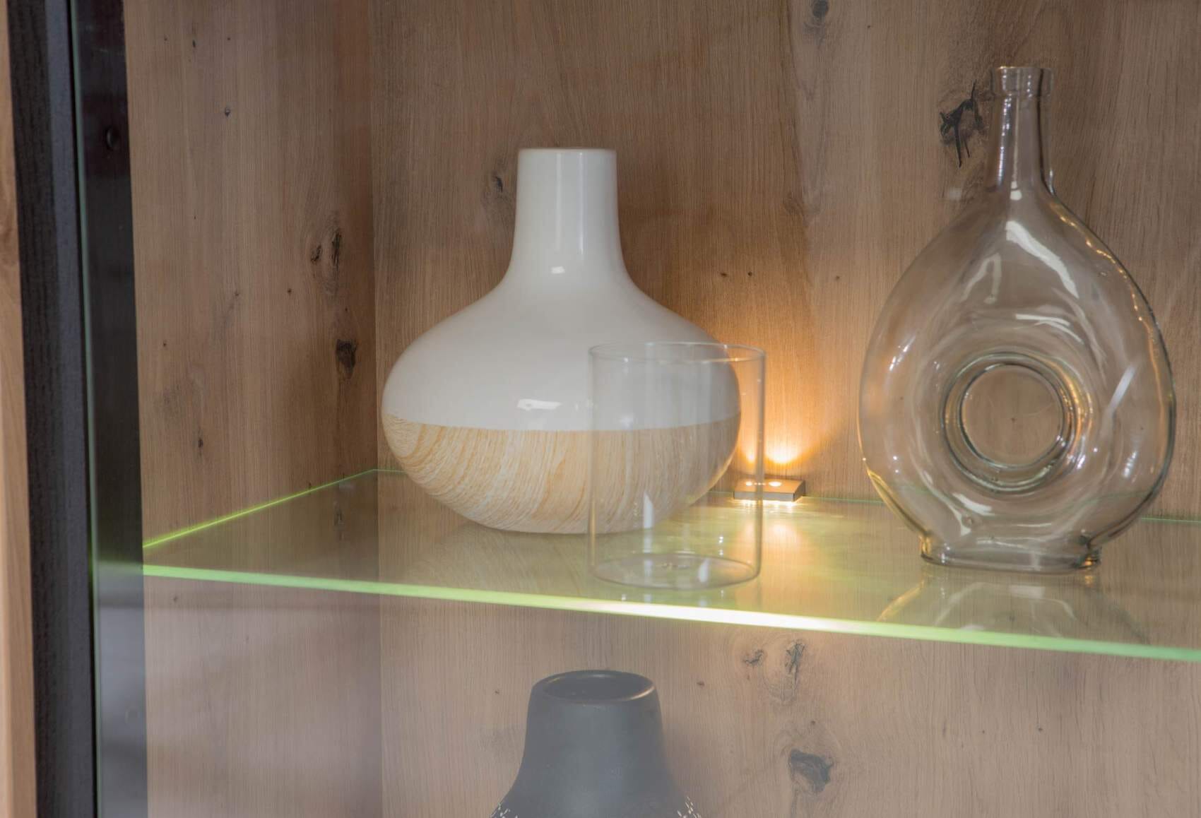 Vitrinenschrank TRONDHEIM, Optik: Artisan Eiche / Schwarzeiche, von Forte