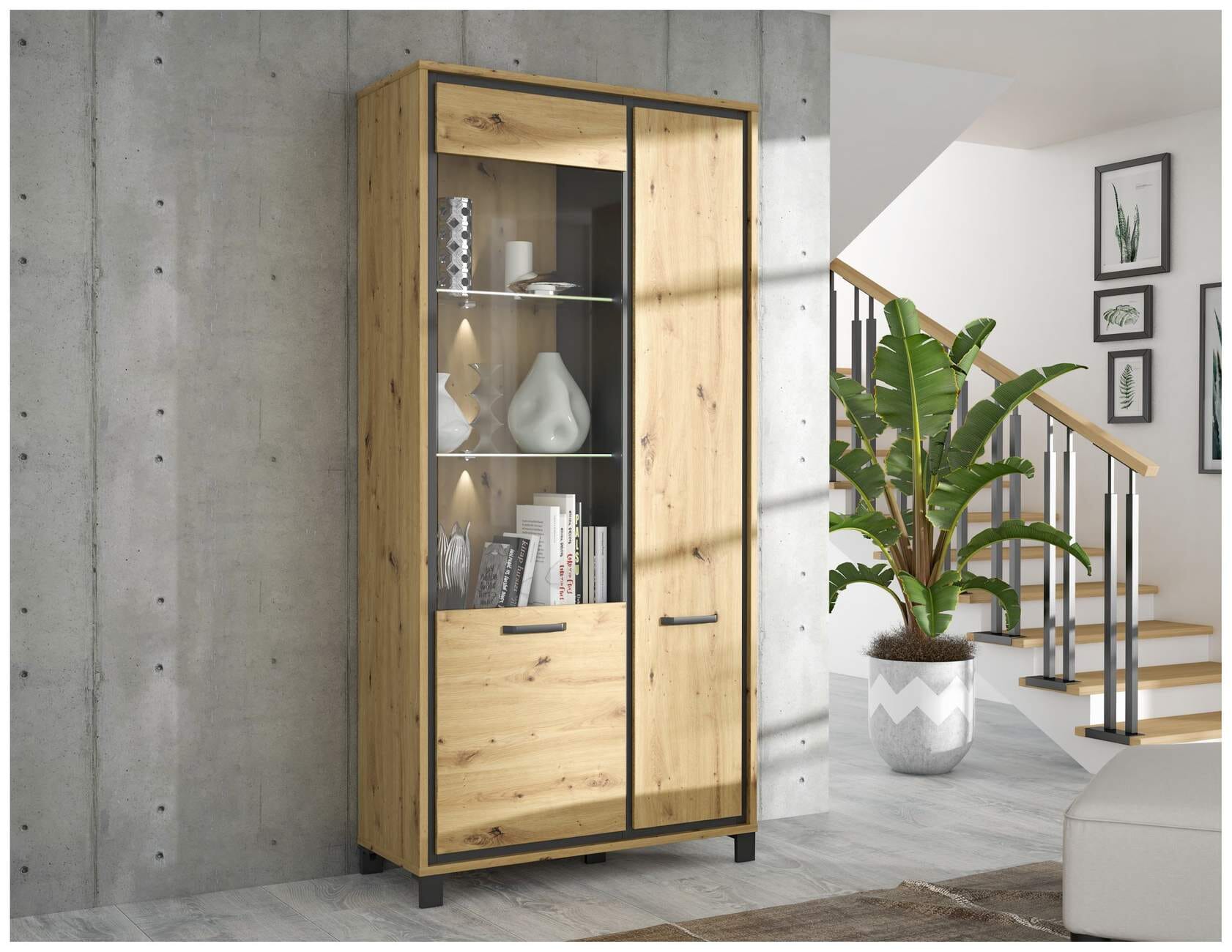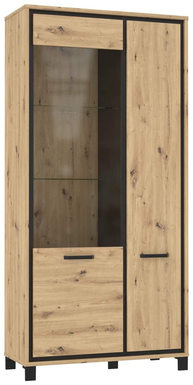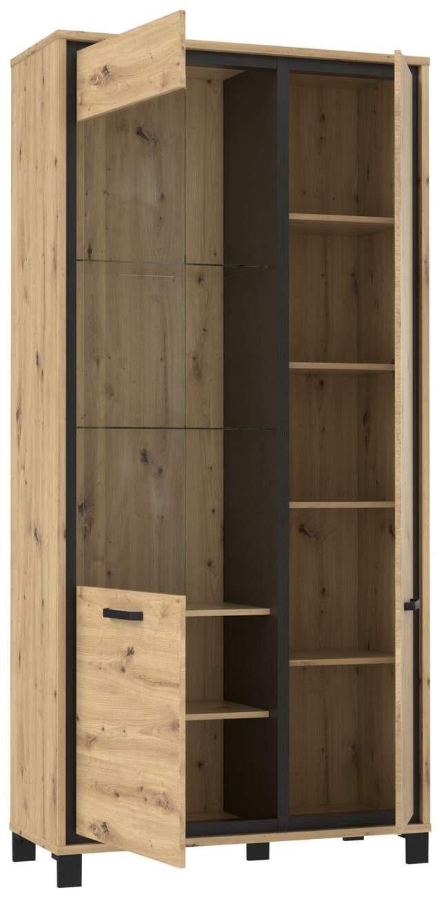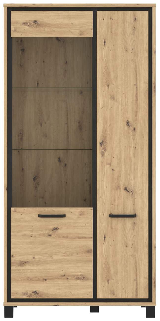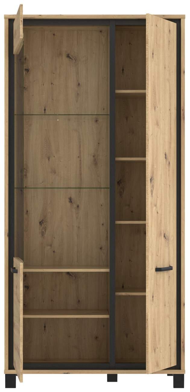 Vitrinenschrank TRONDHEIM 2-trg. Artisan Eiche / Schwarzeiche Optik