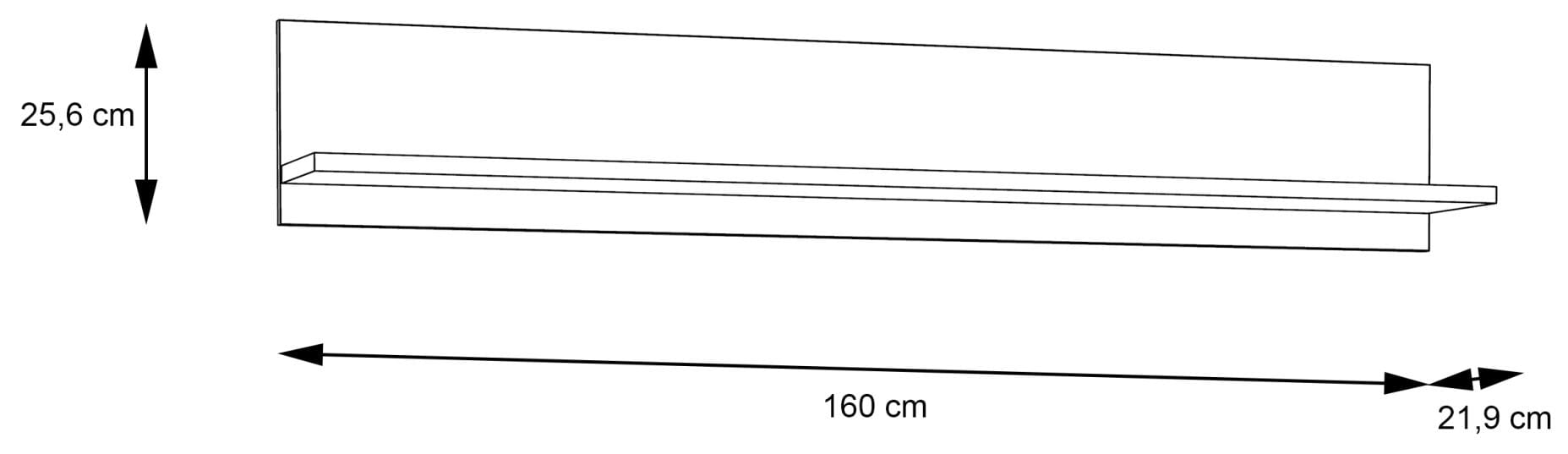 - Maße: B/H/T 160 x 25,6 x 22 cm