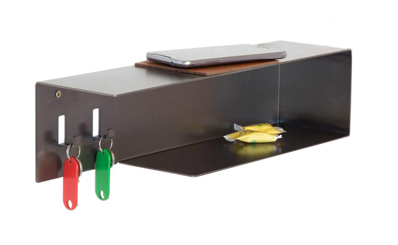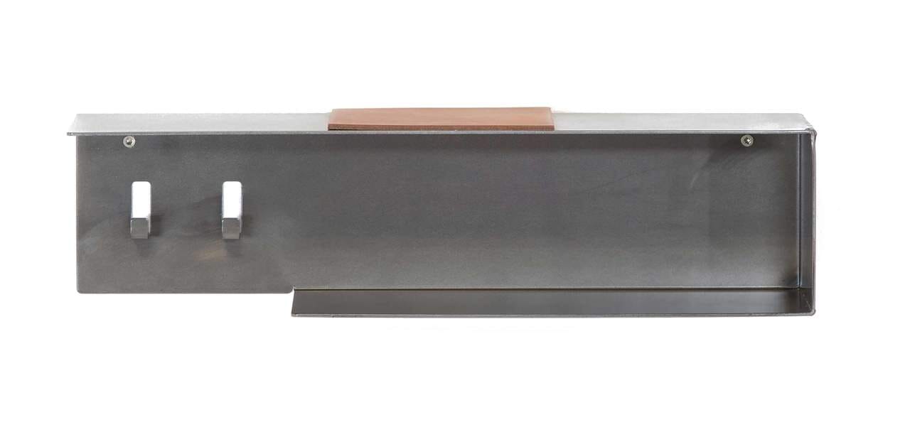 Zu diesem Zweck hat Hombre gleich zwei Ebenen, was sehr übersichtlich wirkt, aber auch räumlich einige Optionen bietet. Ein tolles Modell ohne Chichi hat die Firma Spinder Design hier für Sie ersonnen. Edler, haltbarer Stahl tritt auf, und das innere Prinzip, die beiden Haken und besagte zwei Ebenen, ist genial in seiner raffinierten Schlichtheit.