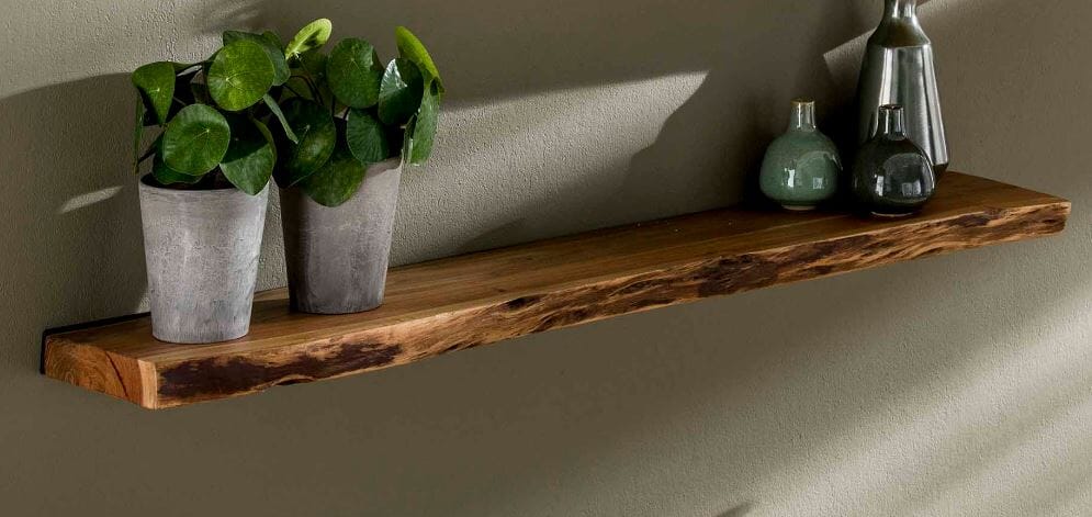 Wandboard Schweberegal KANT 120 cm Akazie lackiert mit Baumkante