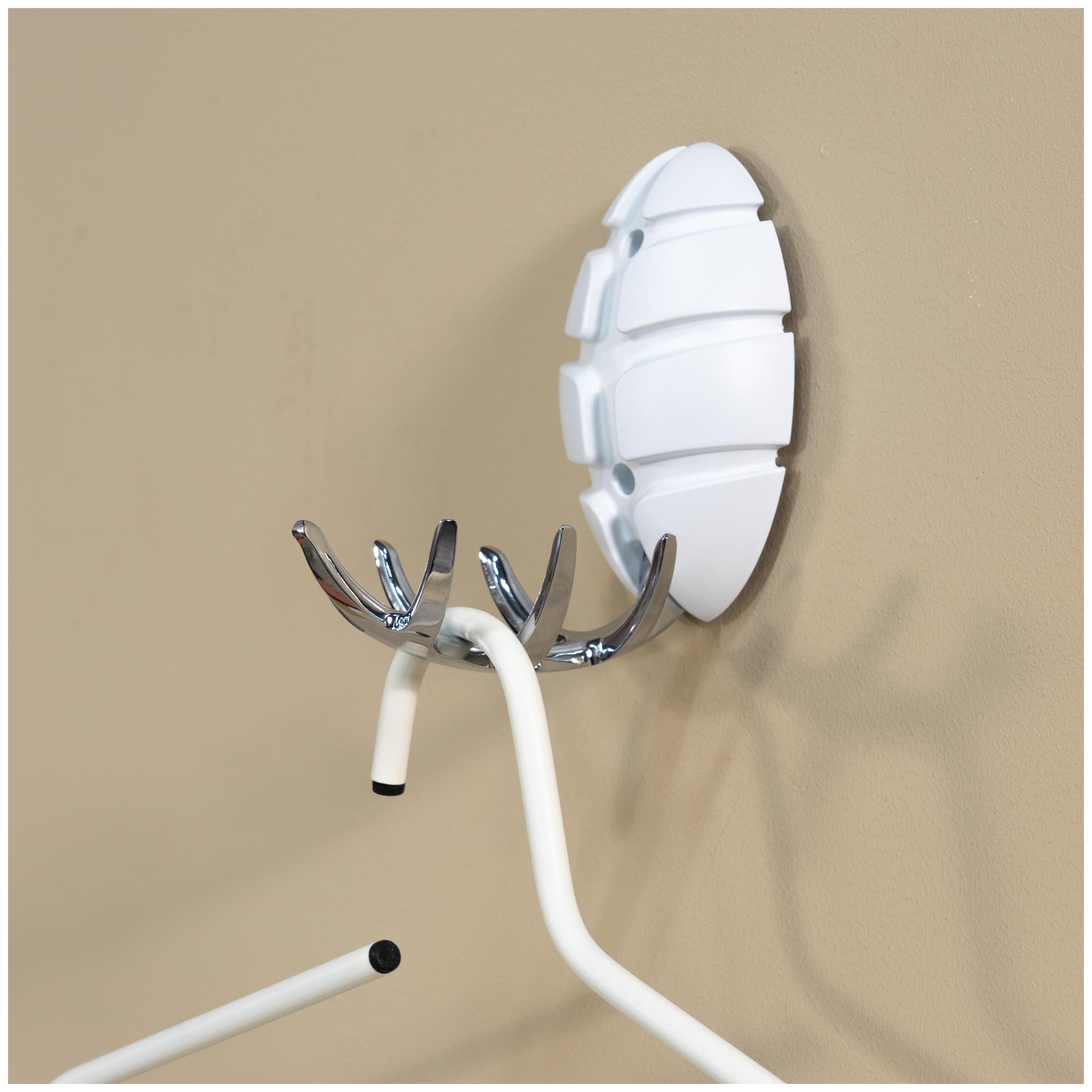 Die BUG Garderobe ist ein wahrer Klassiker, entworfen von Hans Daalder. Geschlossen ist sie eine stilvolle Wanddekoration, die sich bei Bedarf in eine funktionale Garderobe mit sieben Haken verwandelt. Diese Haken können bis zu 20 kg tragen, was sie ideal für schwere Mäntel und Jacken macht.