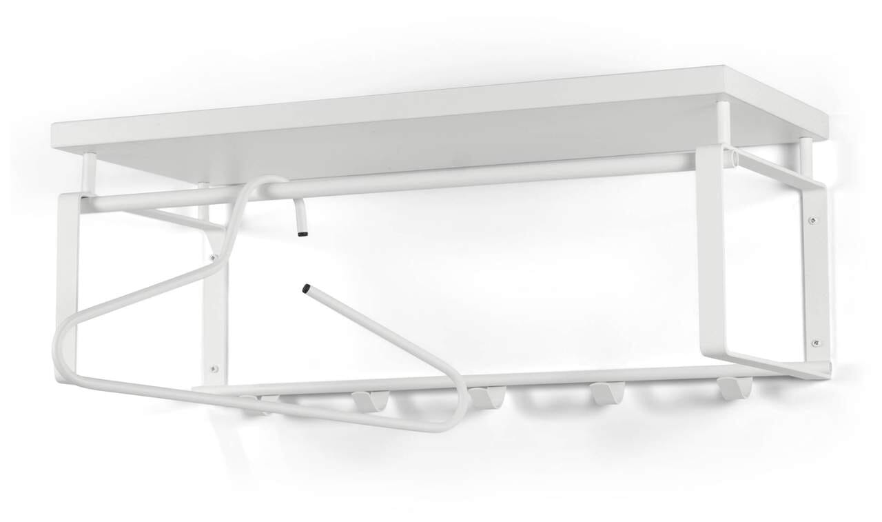 Wandgarderobe REX 3 Weiß, Garderobe mit Hutablage und 5 Haken, Spinder