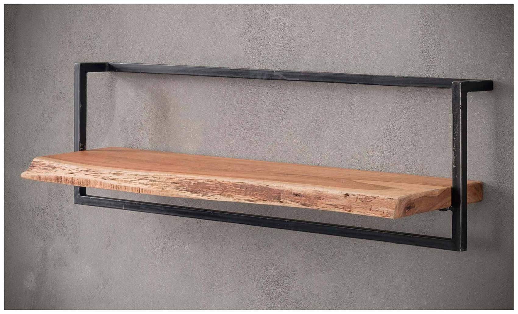 Wandregal KANT 100 cm Stahlrahmen und Akazie Massivholz mit Baumkante